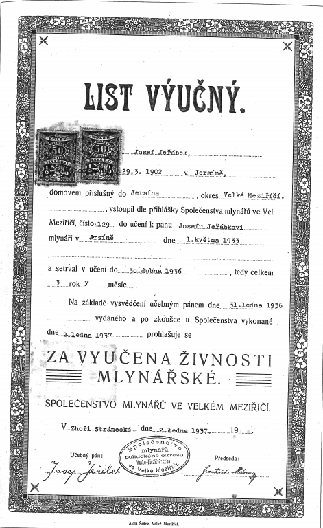 Po něm mlýn převzal syn Josef Jeřábek (*1864) s manž. Anežkou (*1875), dcerou mlynáře Josefa Laštovičky z Nížkova č. 4