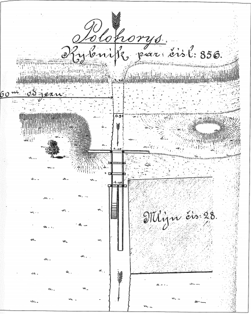 Zápis ve vodní knize sv. III., str. 117 - na mlýně služebnost: ,,Mlynář jest povinen táhnoucí lopaty při jezu vytahovati při návalu vody nebo ledu, aby škodu voda neučinila. Rybník, z kterého mlýn vodu bere, patří Jeho Jasnosti knížeti Emanueli Collalto, mlynář má právo potahování vody z rybníka v každém čase dle potřeby mlýna č. 28. Oprava při jezu nebo splávku náleží majiteli rybníka, oprava neb nové zřízení při hrázi a jiných vodních objektů náleží majiteli mlýna č. 28.“