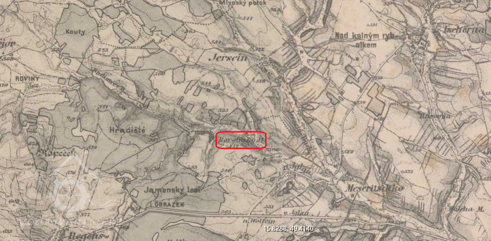 1,3 km jižně od kaple sv. Anny v Jersíně