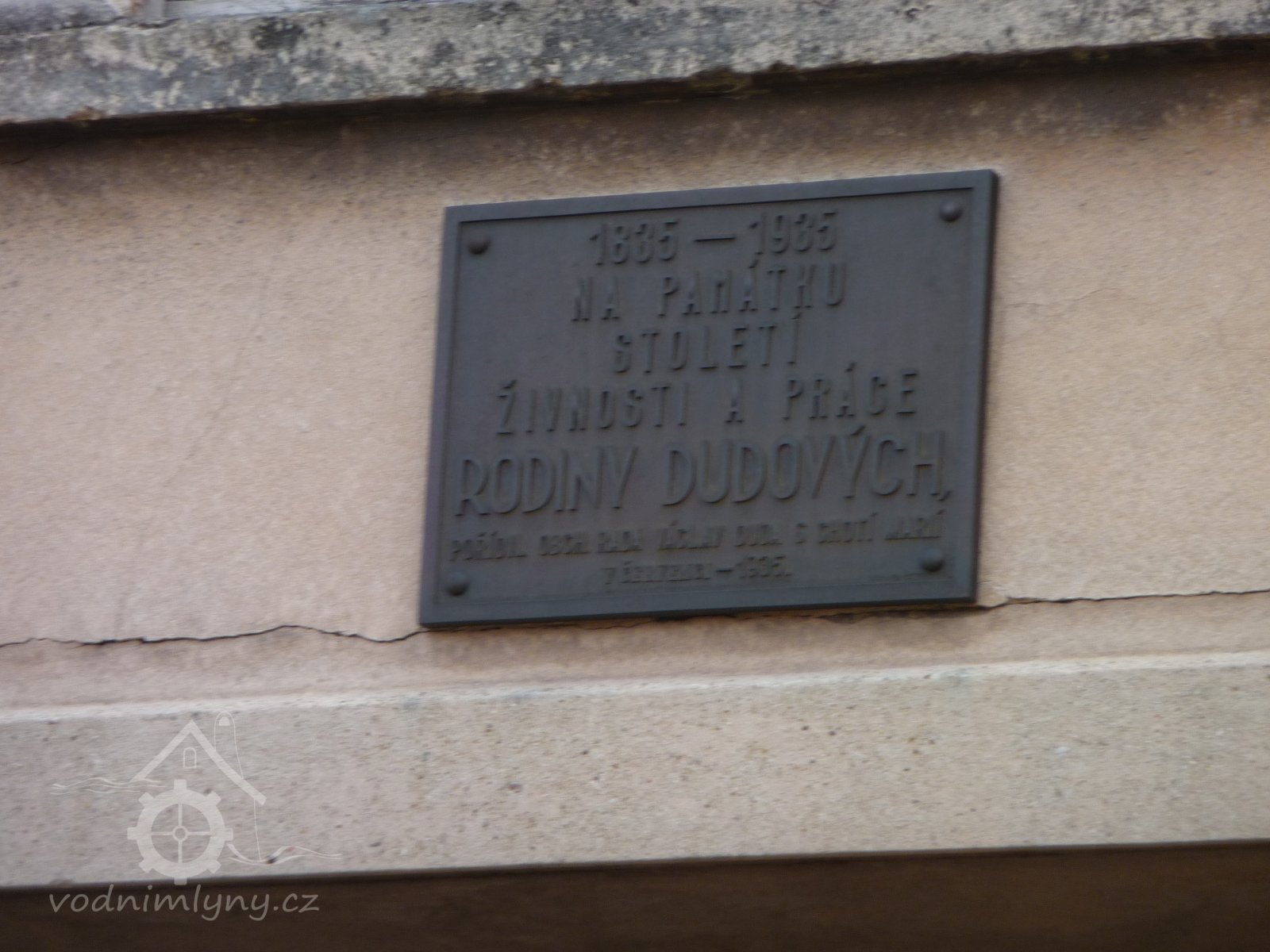 Na budově mlýna je pamětní deska zakladatelů mlýna rodiny Dudových.