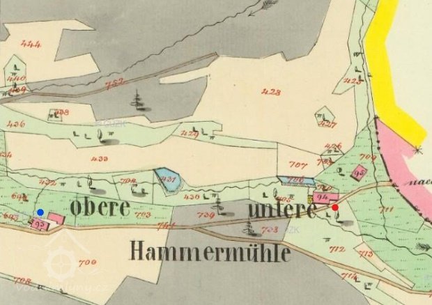V polovině 18. století byl ve vsi mlýn s jedním kolem na nestálé vodě, není však známo, zda se jednalo o Horní či Dolní hamerský mlýn.