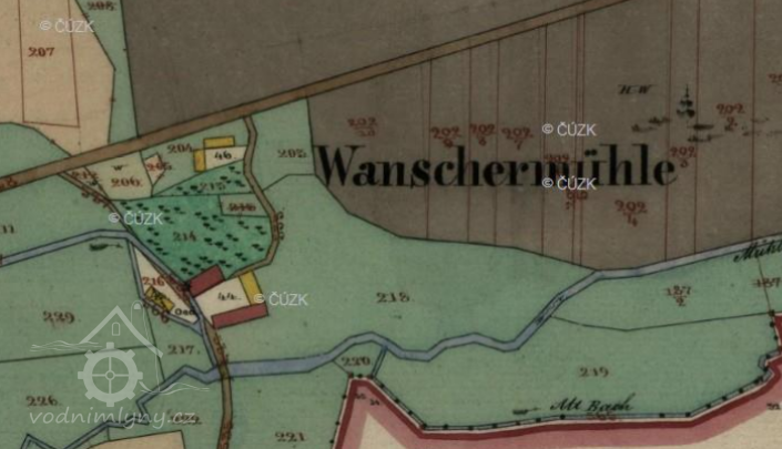 Objekt tzv. Vonšovského mlýna (Wonschamühle), zmiňovaného poprvé roku 1782 v příloze válečné mapy císaře Josefa II., se nachází západně od obce Valy (Alte Schanz) na hranici dvou pohoří v Kynžvartském pasu.