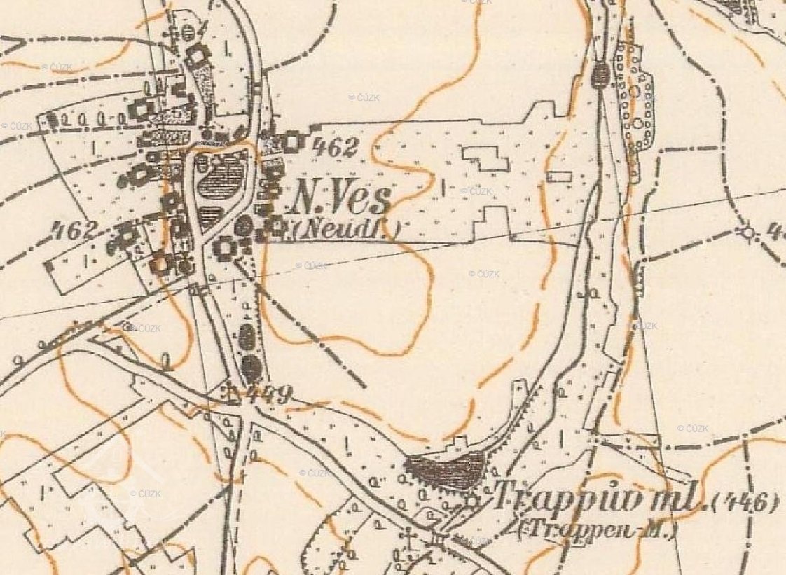 Uveden až na 2. voj. mapování. V seznamu z r. 1930 uváděn již jako soustružnictví. Budova zanikla v 50. letech po odsunu obyvatelstva. Dnes nepatrné nerovnosti v terénu a zbytky kameniva.