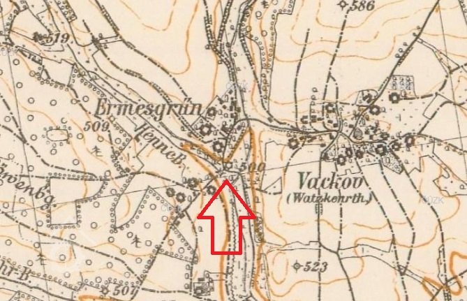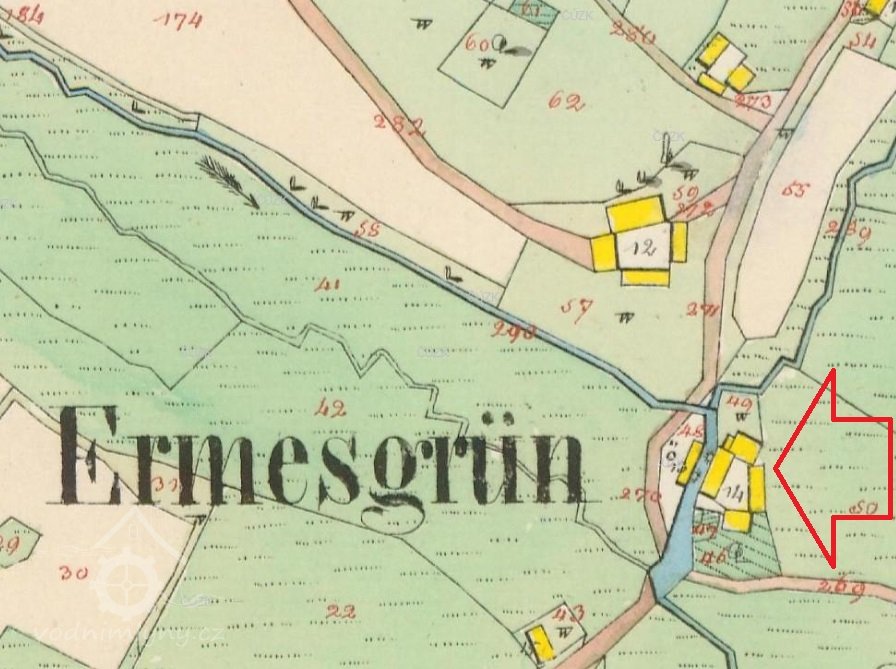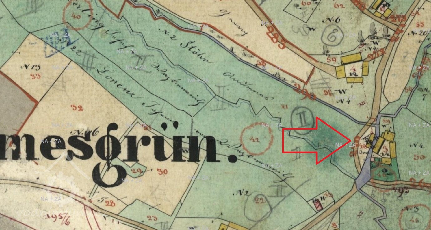 V místech soutoku potoků Hennebach a Rüederbach byl už v roce 1700 postaven mlýn „Grünmühle“ (Zelený mlýn). Byla to jednoduchá dřevěná stavba bez hrázdění. (Kronika Plesná)