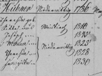 Konec 18. století – mlynář Johann Heinrich Hübner s manželkou Veronikou. Mlýn převzal jejich syn Johann Karl narozený v lednu 1786.