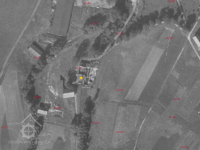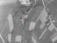 Na leteckém snímku z roku 1946 je již vidět propadlá střecha a obvodové zdi v severní části mlýnské budovy.