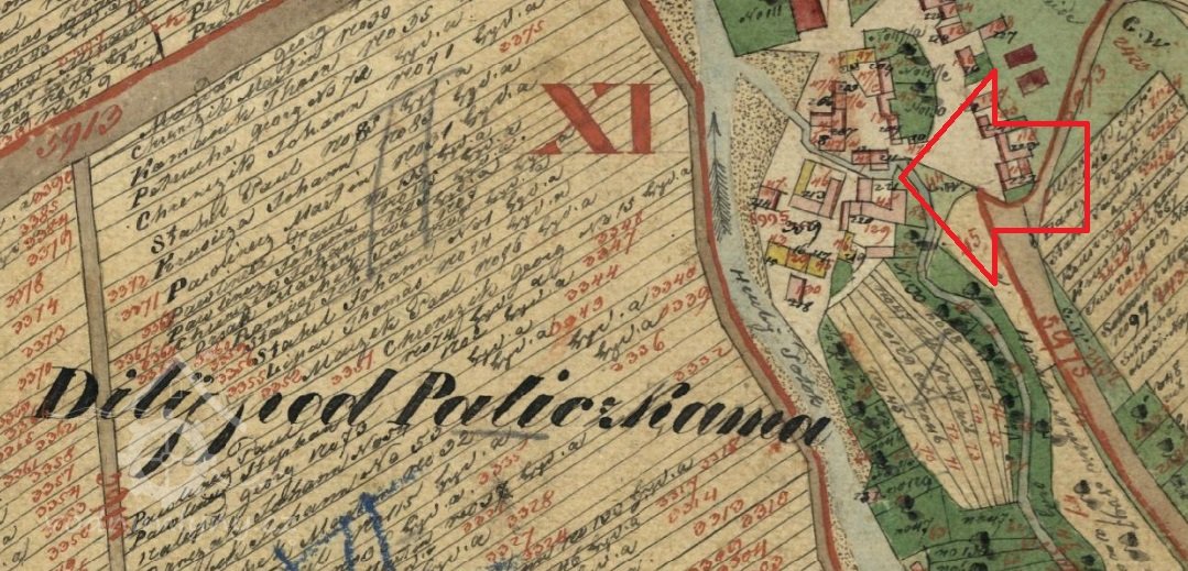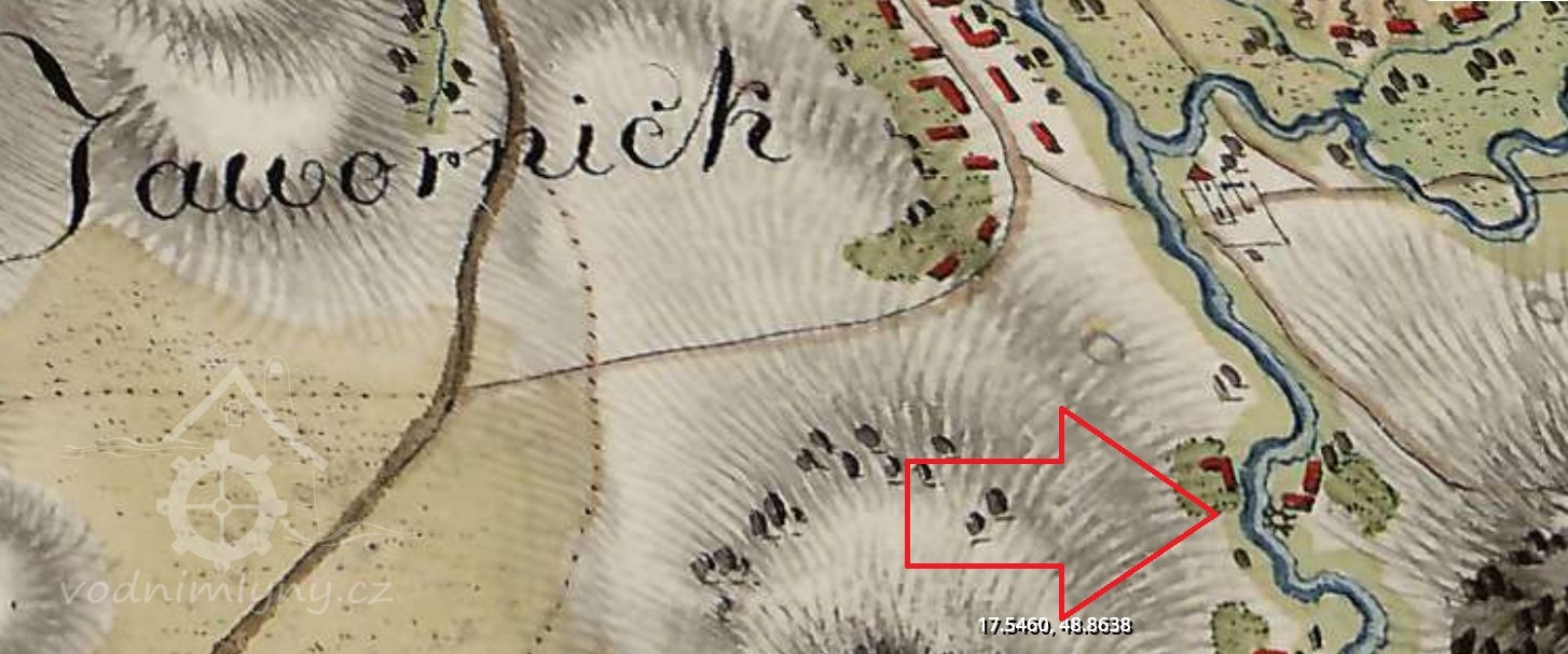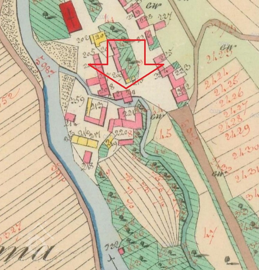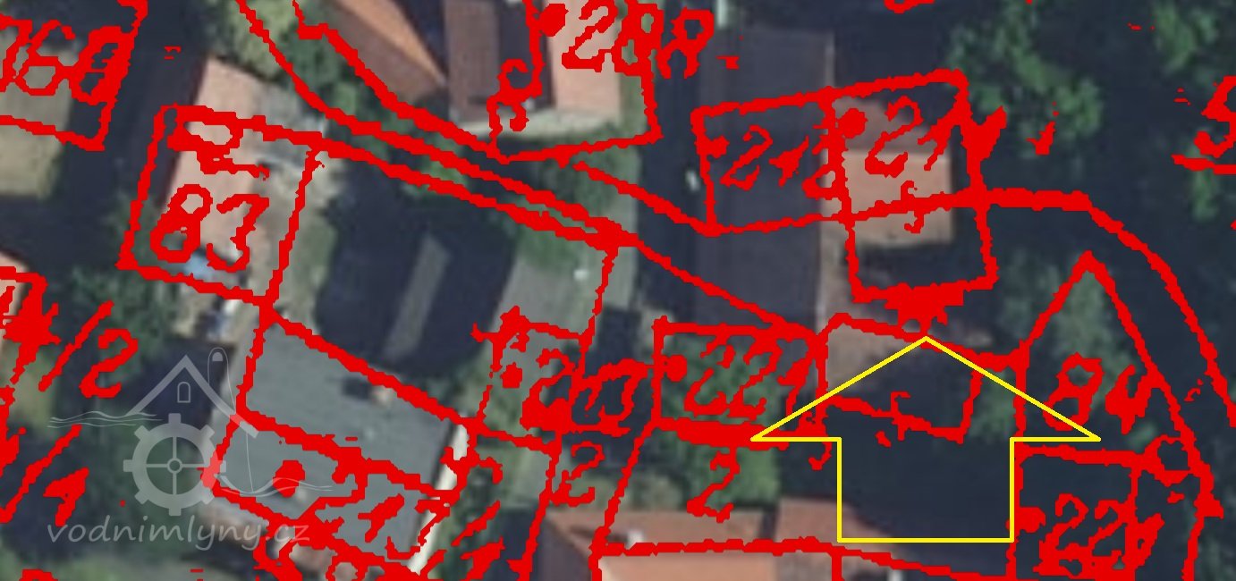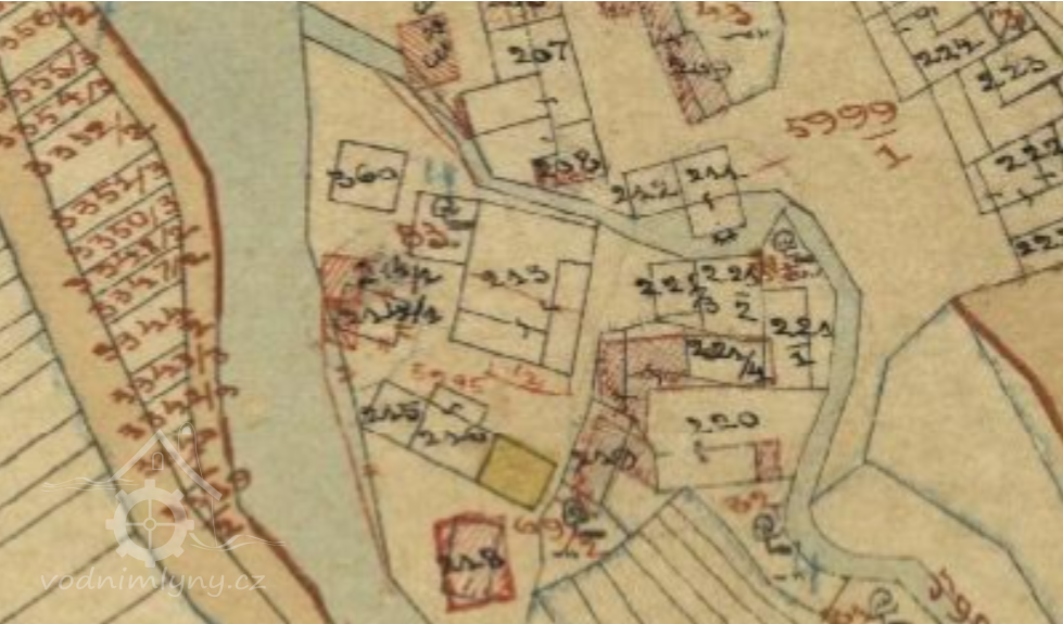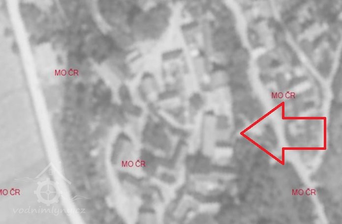 Mlýn uveden již na 1. voj. m. Dnes na místě jiná budova bez čp.