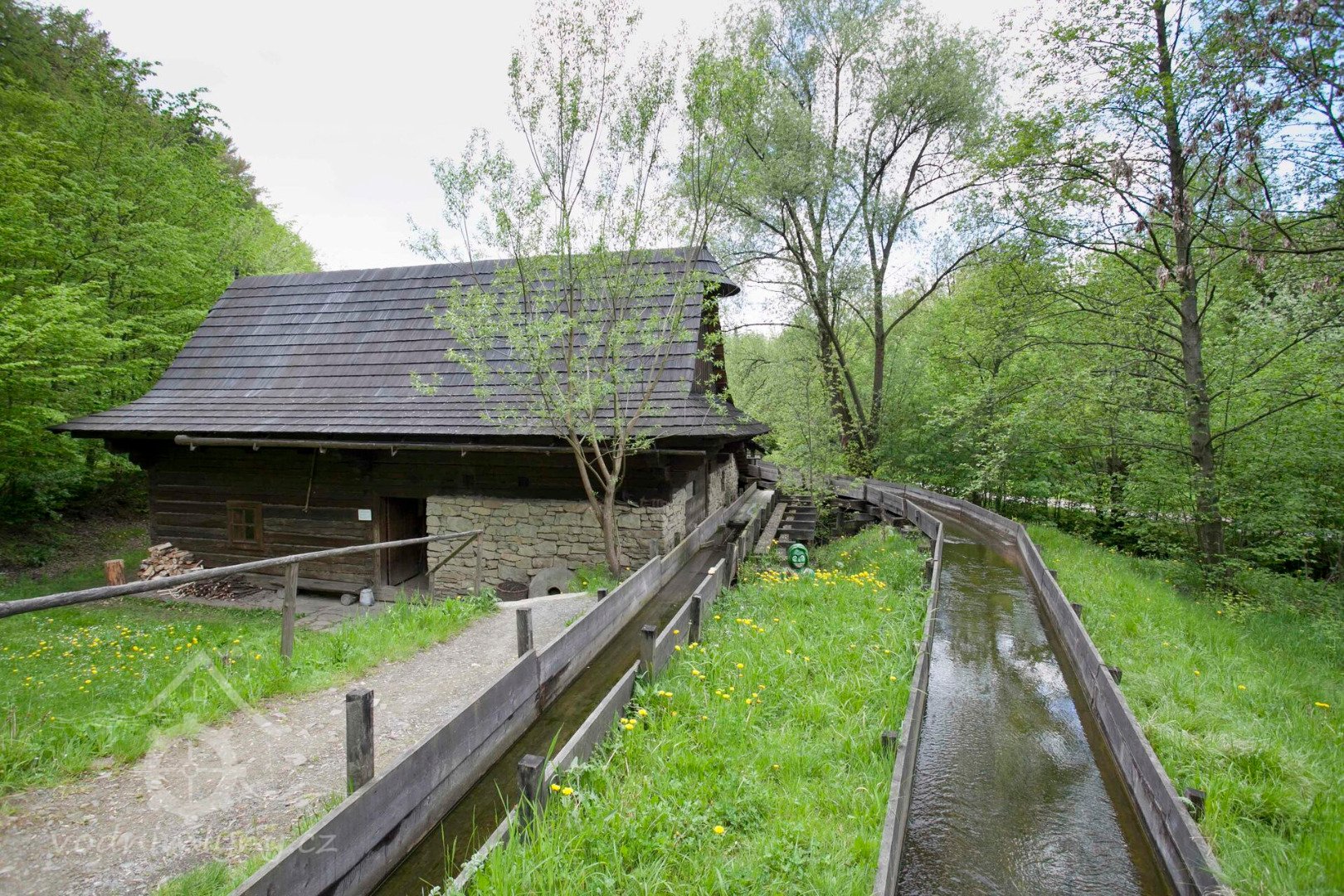 Na místě mlýna nově zřízena stylová valašská dřevěnice.