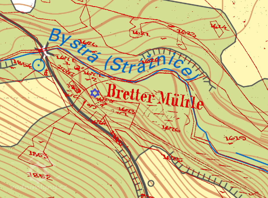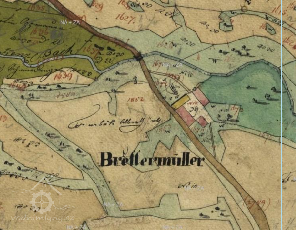 Mlýn a pila na potoce Bystrá , stavení čp.10, patřící rodu Dräxler.