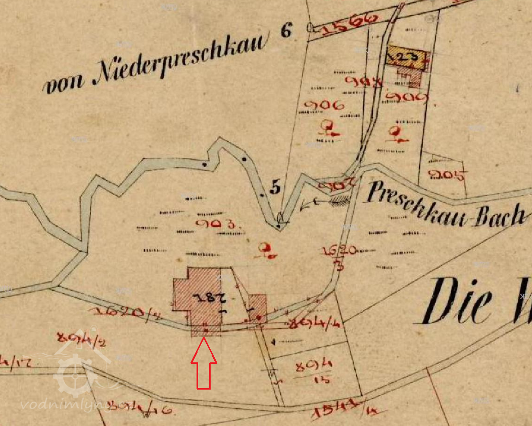 Na začátku 80. let 19. století byl majitelem mlýna Josef Förster, syn koláře Franze Förstera z obce Kerhartice. Jeho manželkou byla Katahrina, rozená Weiss. Josef Förster provozoval pouze mlýn, pekárnu při mlýně vedl najatý pekař Franz Passtel. Mlynář zemřel již v květnu 1886 ve věku 58 roků. Vdova Katharina se již v srpnu téhož roku provdala za pekaře Franze Passtela, který byl o 21 roků mladší: nevěstě bylo při sňatku 48, ženichovi necelých 27 roků.