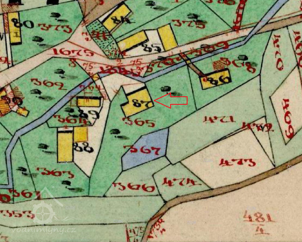 Nad mlýnem na pozemku č. 367 byl menší rybník pro akumulaci vody.