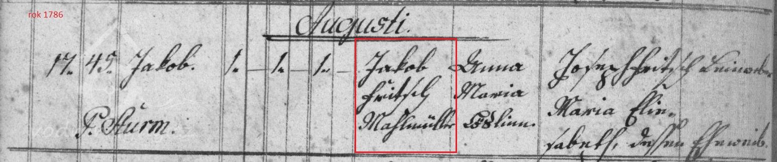 Od roku 1771 byl veden v matrikách obce pod čp. 45 a byl zakreslen do mapy I. vojenského mapování. V té době ho provozoval mlynář Jakob Fritsch s manželkou Annou Marií Löfel. Manželům se zde narodily děti Barbara (1771), Franz Wenzel (1774), Maria Anna (1775), Franz Anton (1781), která však všechny zemřely v dětském věku. Další syn, Jakob, narozený v srpnu 1786 se dožil dospělosti a převzal mlýn.