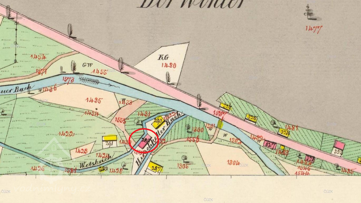 Mlýn byl zmiňován již v 2. polovině 18. století v matrikách obce Dolní Oldřichov (Děčín), byl spojen s mlynářským rodem Astlerů. V roce 1771 dostal při číslování domů čp. 15. tehdy zde hospodařil mlynář Johann Franz Astler s manželkou Annou Marií. V roce 1772 se jim zde narodil dědic mlýna Josef. (MH)