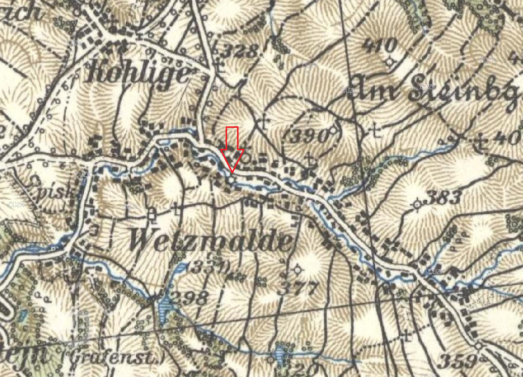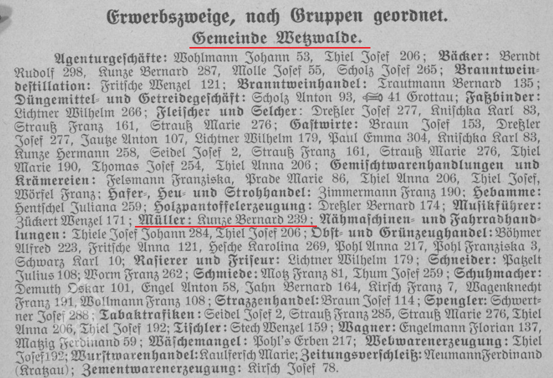 Adresář obce Václavice z roku 1914 uvádí ve výpise živností Bernarda Kunzeho jako václavického mlynáře v čp. 239.