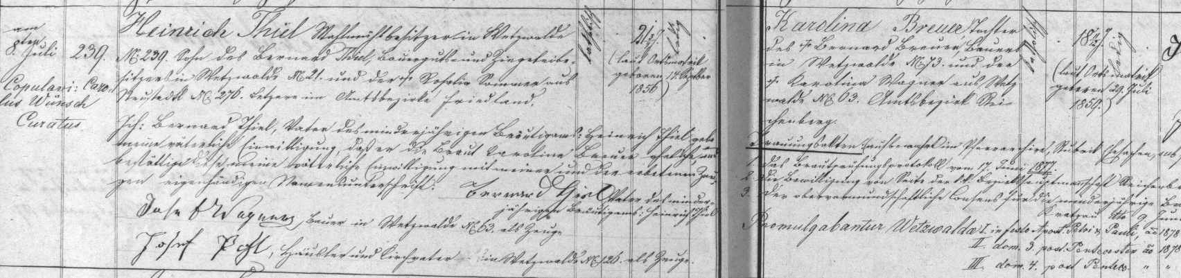 V 2. polovně 70. let byl majitelem mlýna mlynář Heinrich Thiel. Ten se v červenci 1878 oženil s Karolinou Breuer, dcerou sedláka z Václavic.  V září 1879 se jim na mlýně narodil syn Bernard Richard, v únoru 1881 dcera Rosalia Karolina.