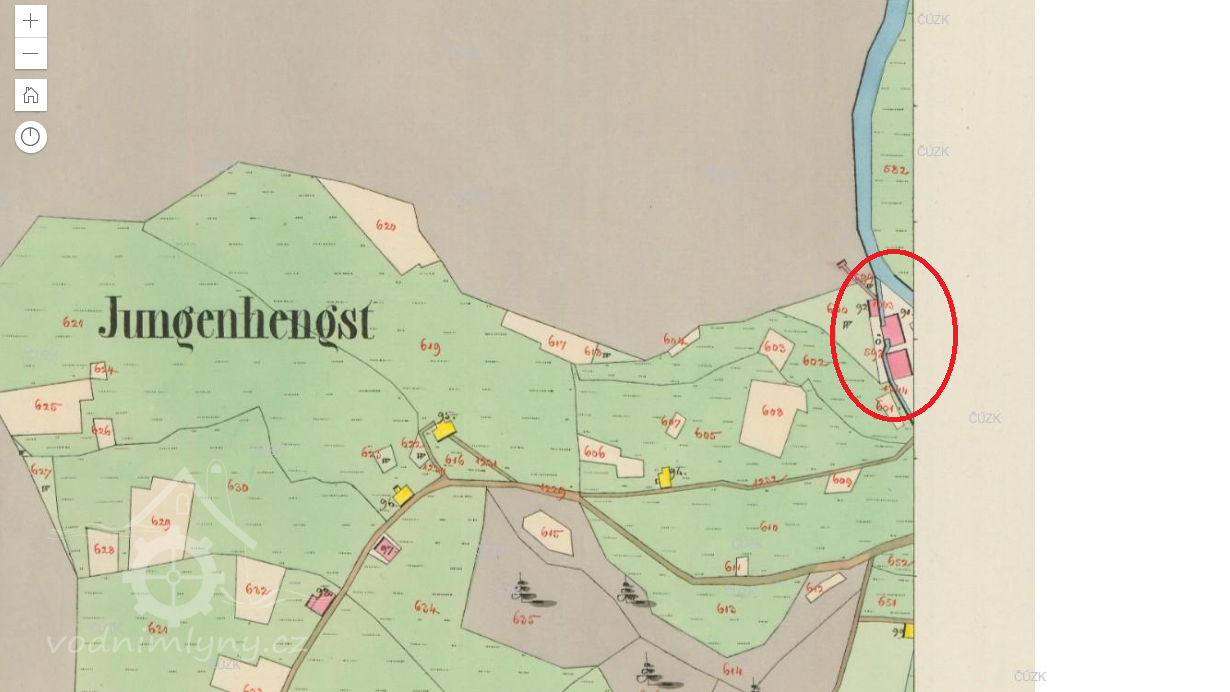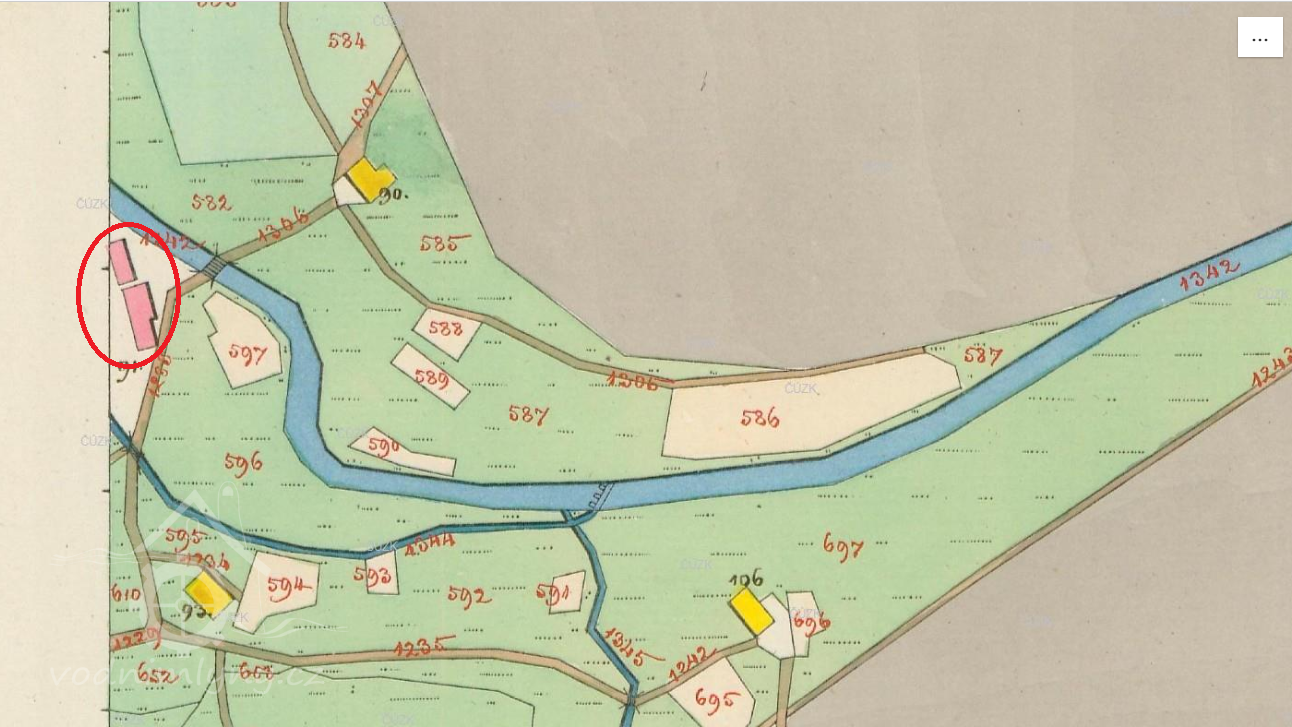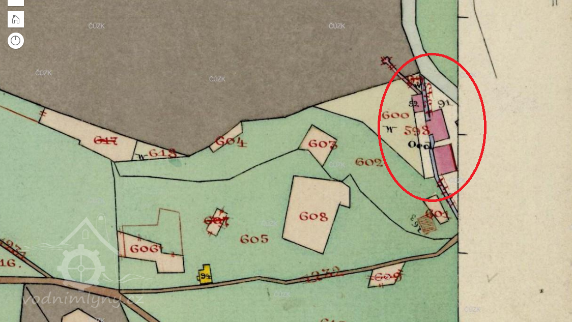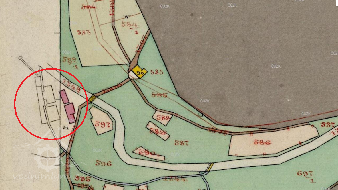 1842 - vyznačen na indikační skice. V mapě II. vojenského mapování označen jako obilný mlýn.