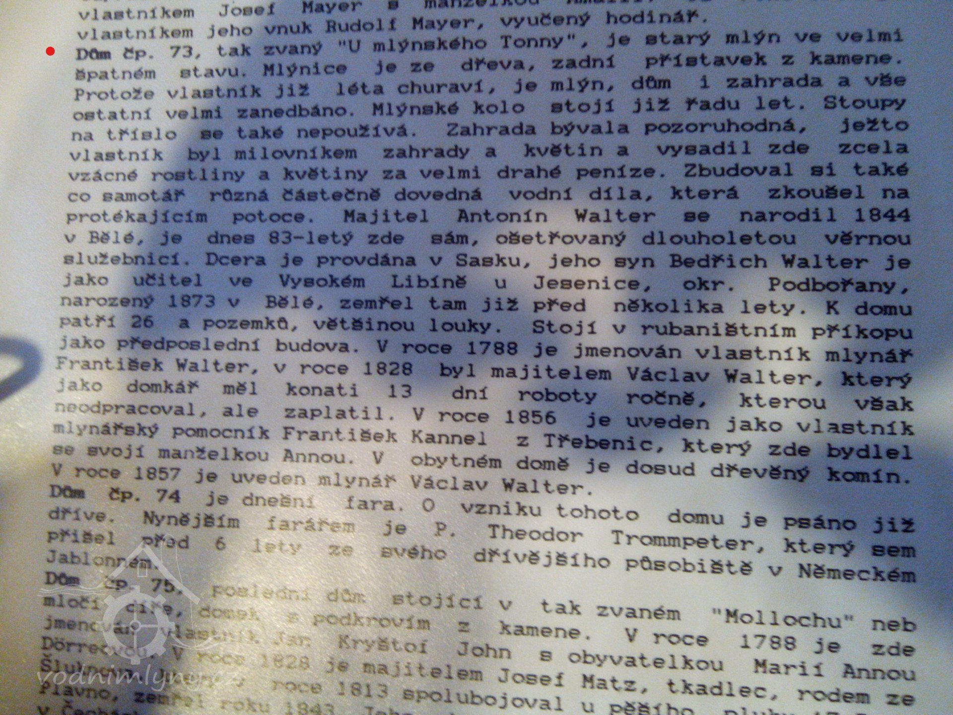 1788 - vlastník mlynář František Walter