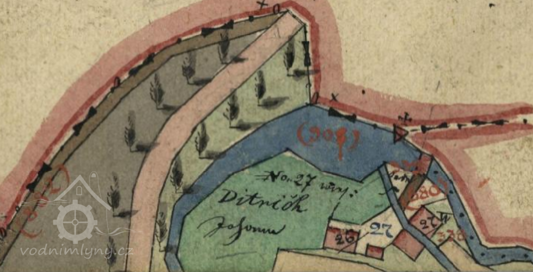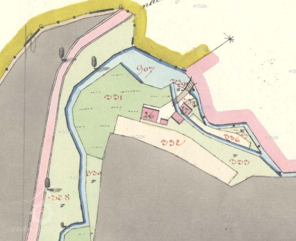 Popis1930: 1 kolo na spodní vodu, hltnost 0,88 m3/s, spád 1 m, výkon 5,8 HP