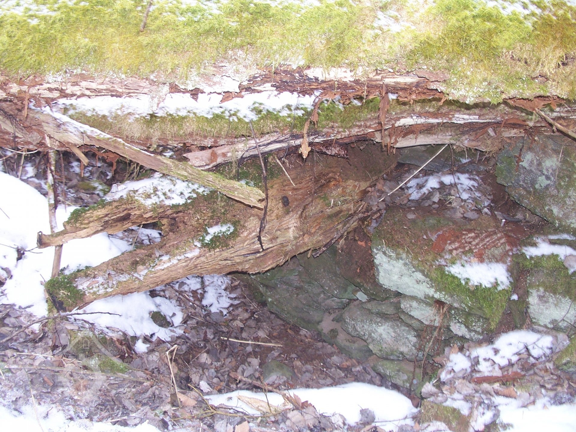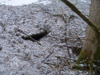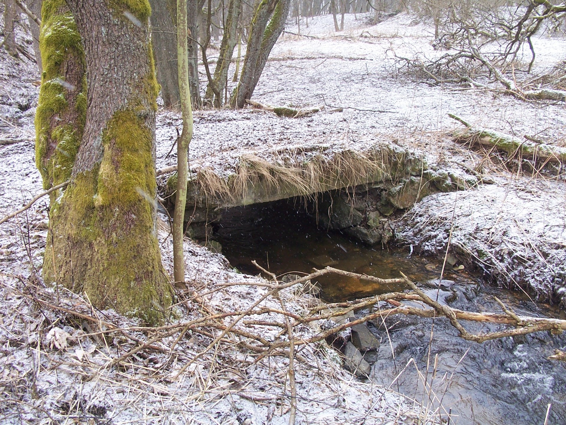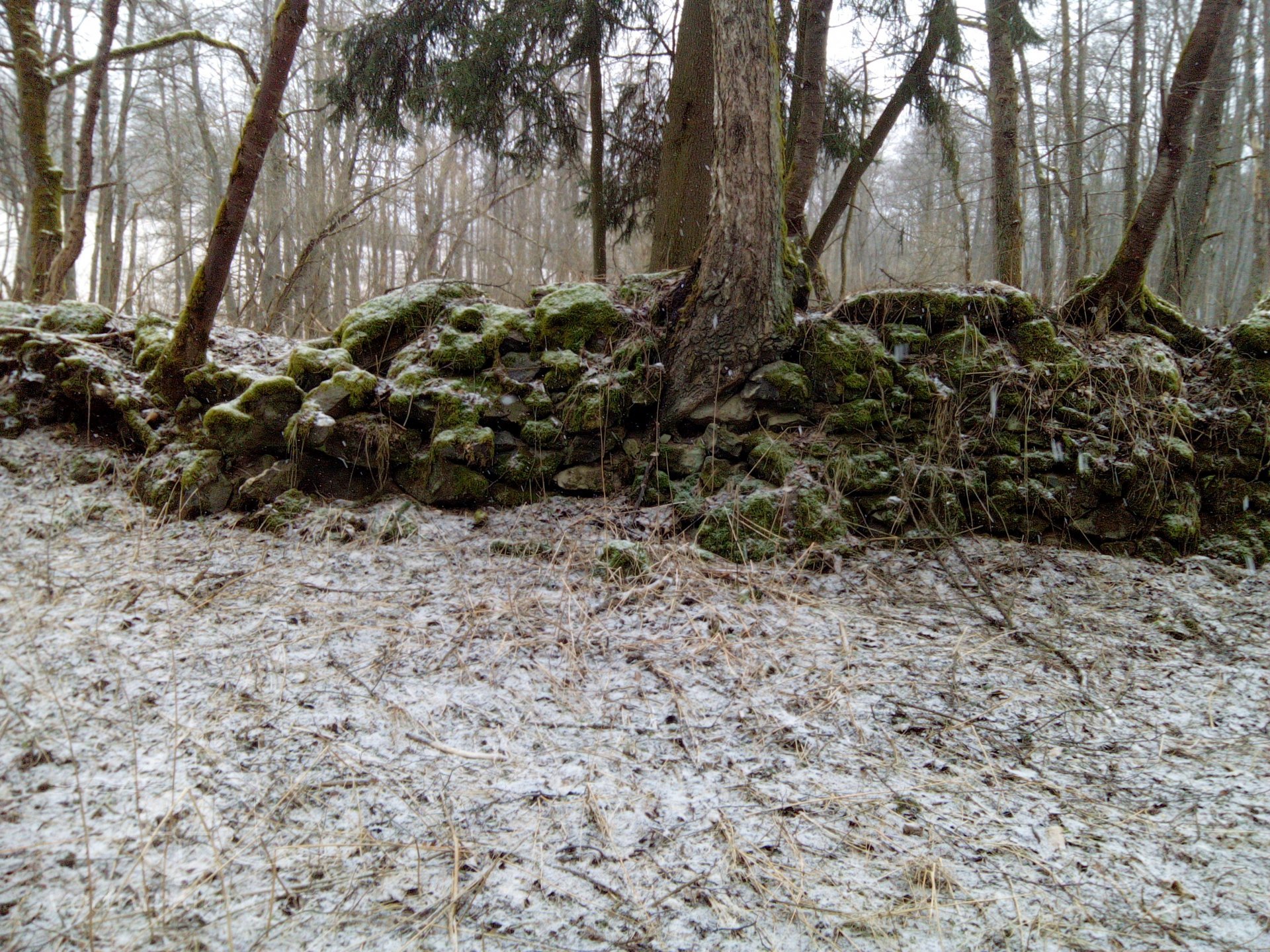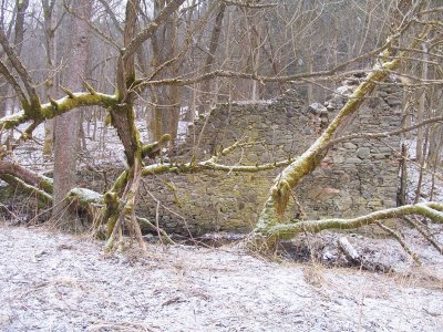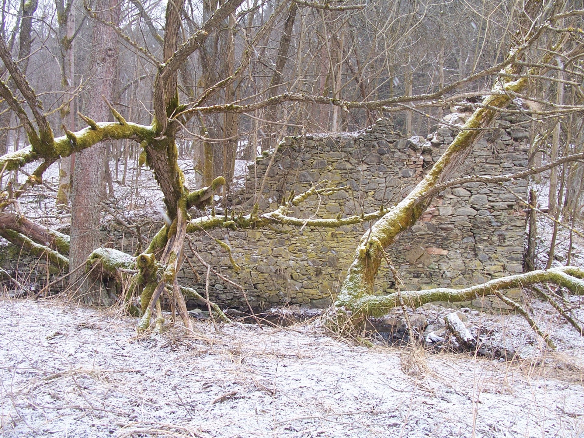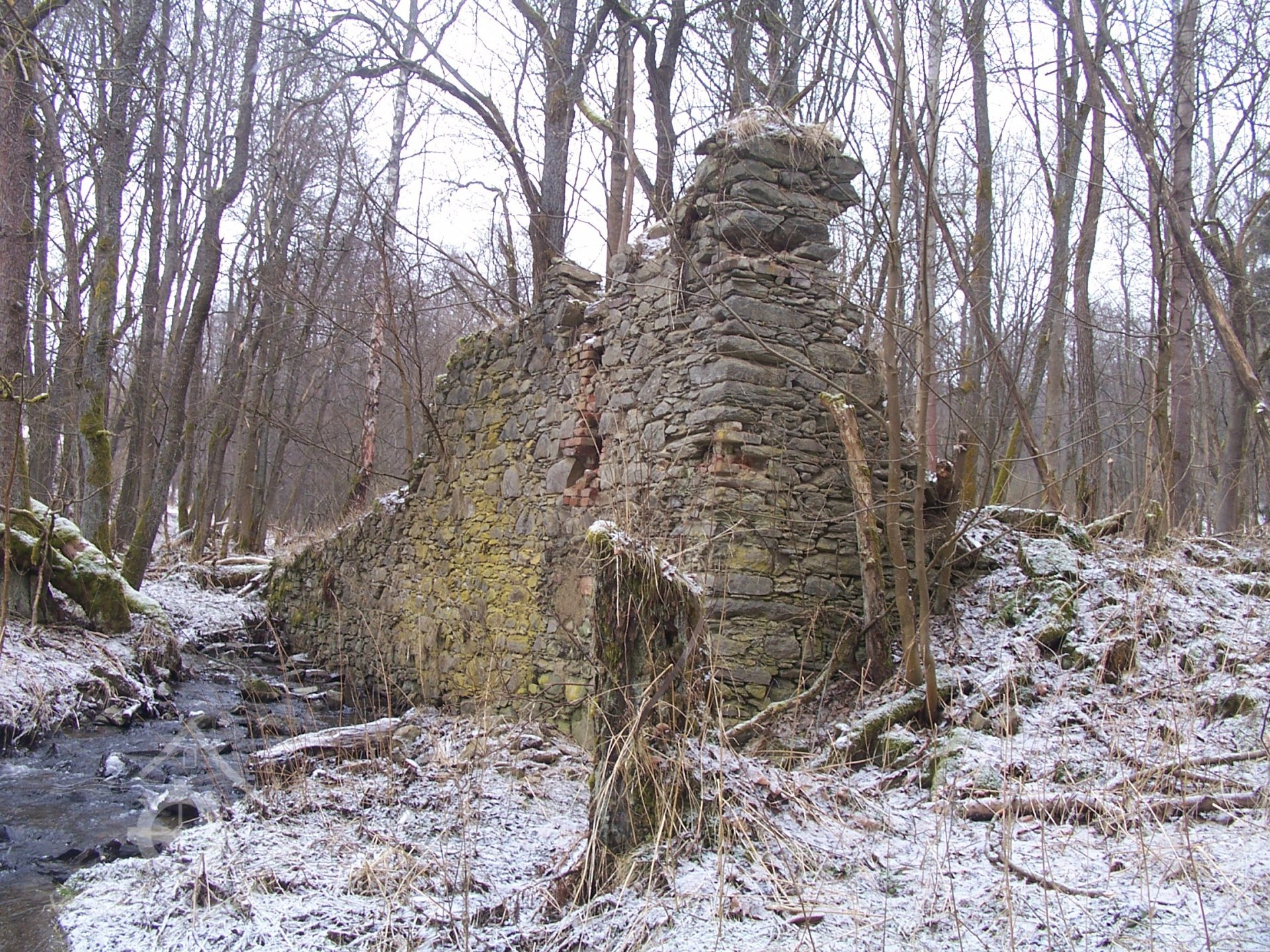 Zbořený mlýn. Jeho trosky jsou dosud dobře patrné a dodávají místu romantický ráz.