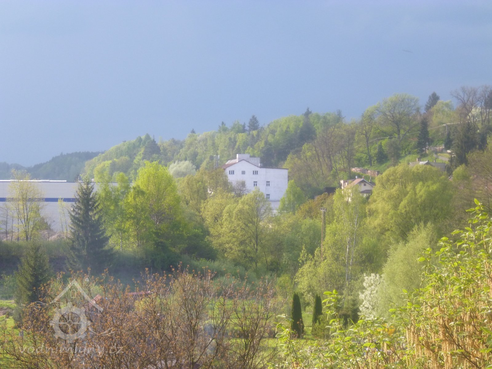 1711 kamenný mlýn, naproti dřevěné chlévy