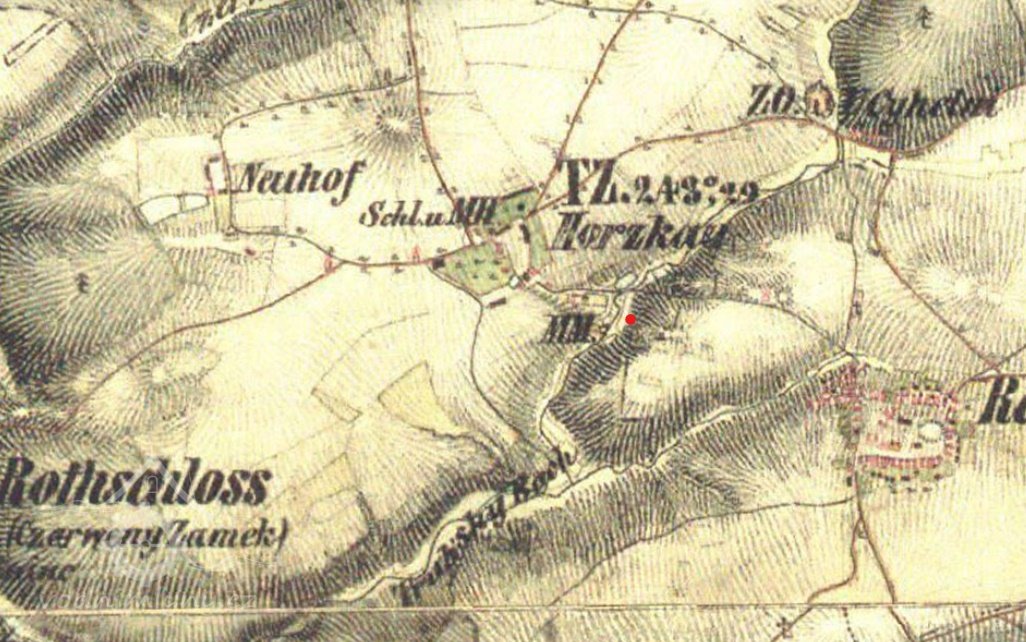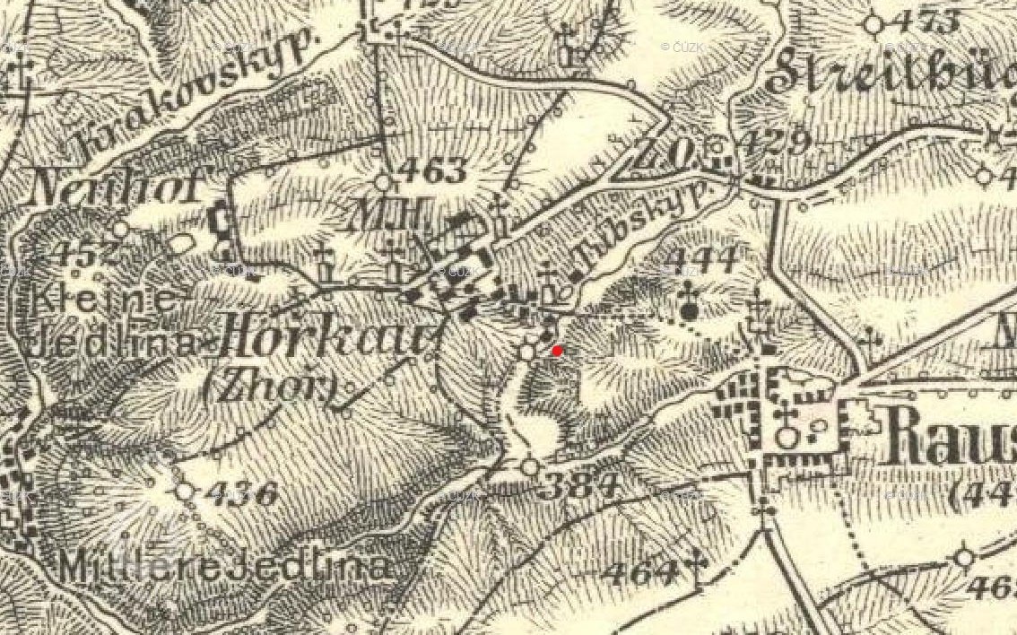 Vyznačen na I. vojenském mapování.