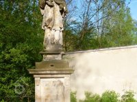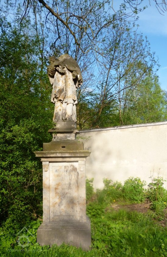 Nedaleko mlýna stojí poškozená socha sv. Jana Nepomuckého.