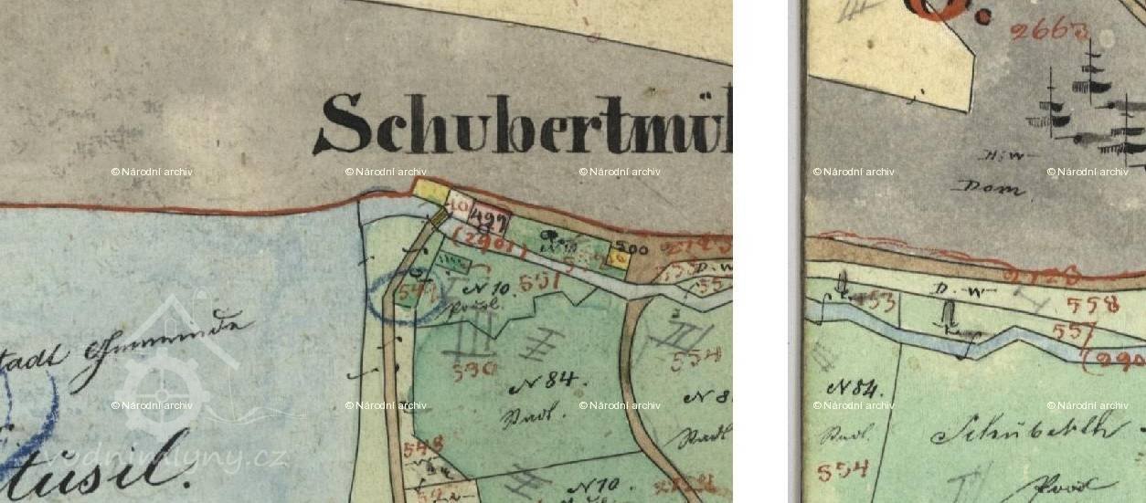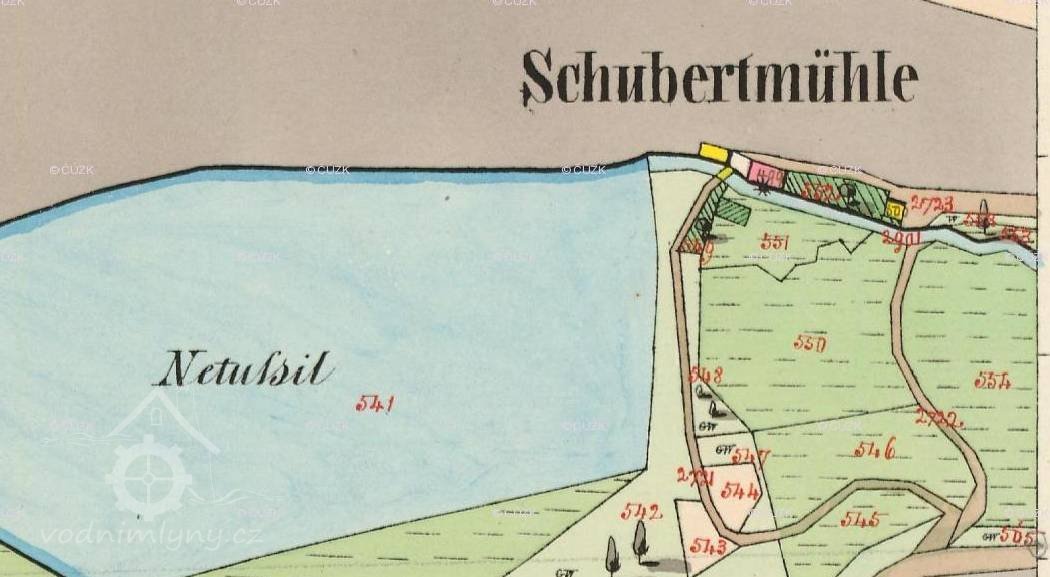 1862 zřízena jalová strouha, odbočující od Bělé vpravo před rybníkem Netušilem. Zprava obchází rybník a vrací se zpět do potoka pod mlýnem. Horní hrana stavidla udržovala hladinu vody v potoce před mlýnem i v rybníku. Při velké vodě nebo při čištění potoka se toto stavidlo otevíralo, voda obcházela Šubrtov a do koryta se vracela pod mlýnem. Potok pokračoval podél rybníka, s kterým byl propojen propustkem. Rybník tak sloužil jako vyrovnávací nádrž podle potřeb mlýna.
