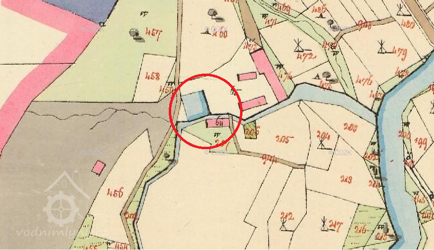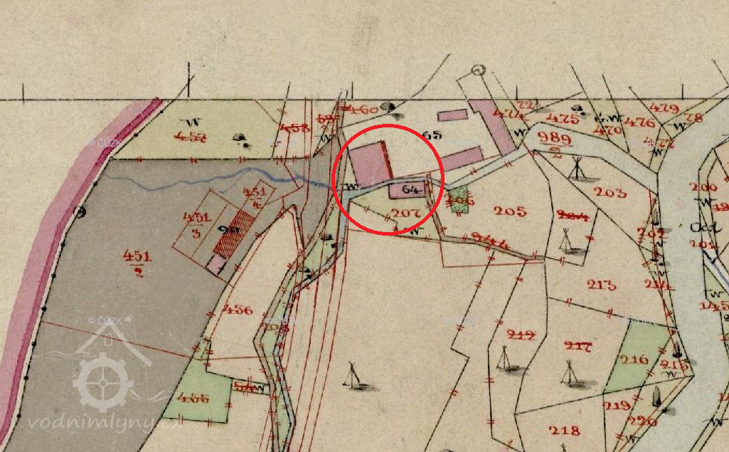 Mlýn původně že 14.stoleti, do současné velikosti přestavěn v roce 1867. Od té doby sloužil jako společenský dům, ubytovna pro česáče chmele a sqwat pro narkomany. O jeho údržbu nikdo moc nedbal. Současní majitele se ho snaží zachránit, tak snad se jim to povede. Obětavě v něm i bydlí.