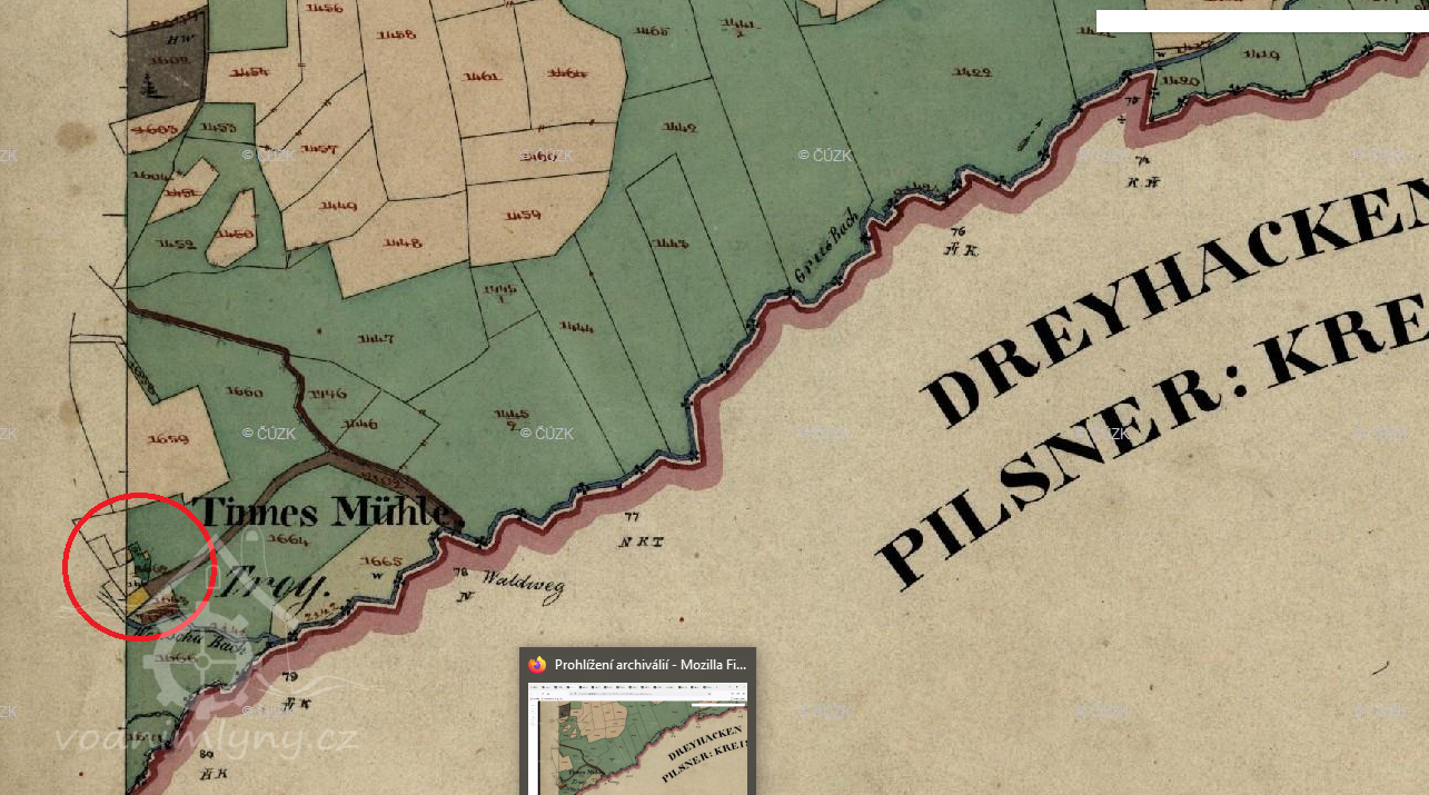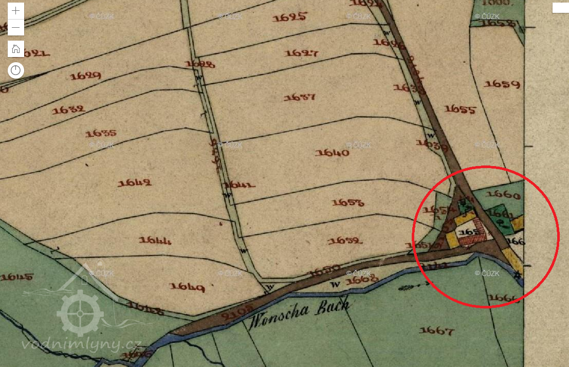 Popis1930 - 1 kolo na svrchní vodu, průtok 0,080 m3/s, spád 3,5 m, výkon 2,4 HP.