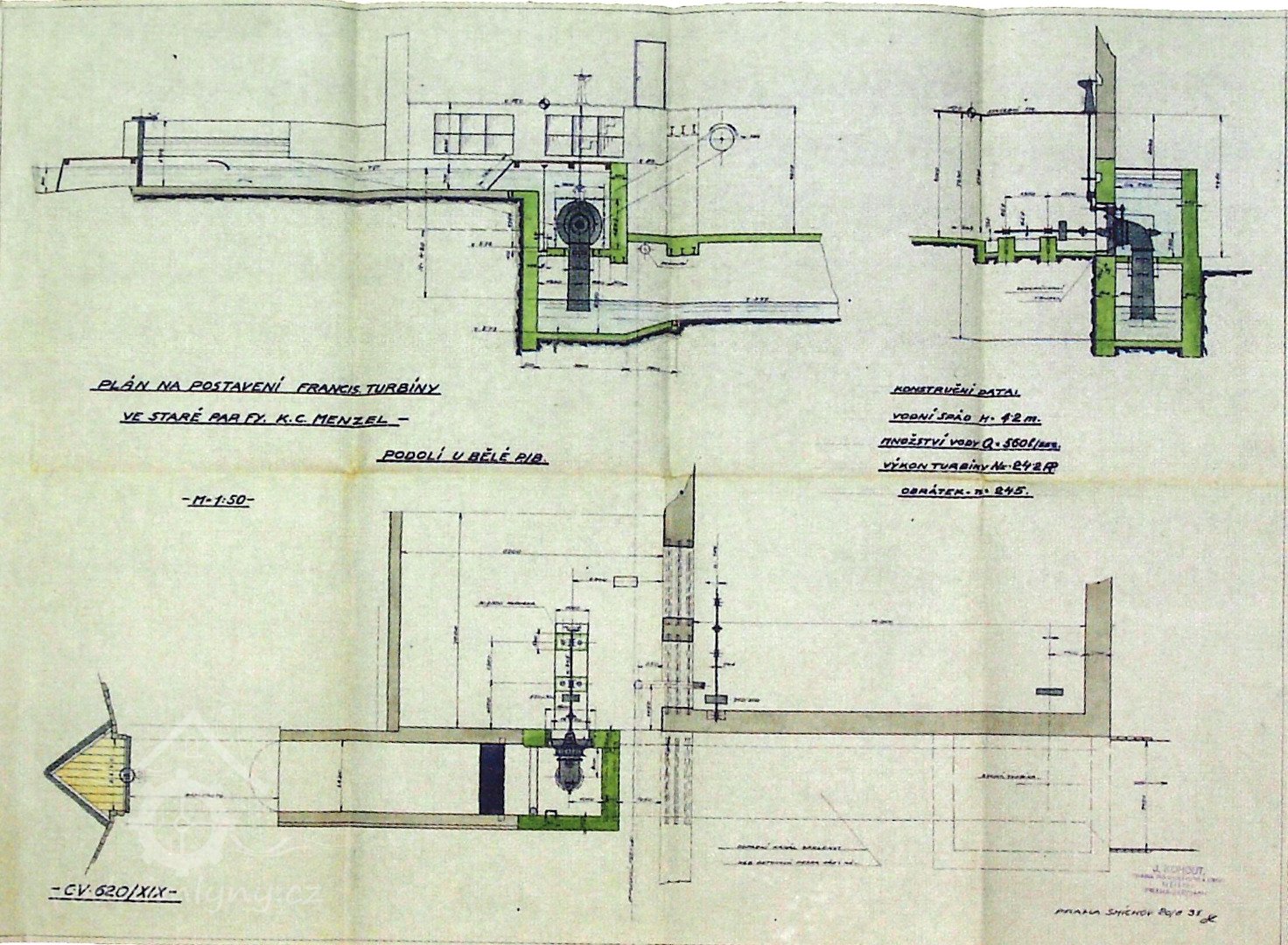 PopisV roce 1930 byla v papírně 1 Girardova turbína, hltnost 0,53 m3/s, spád 4,25 m, výkon 22,52 HP