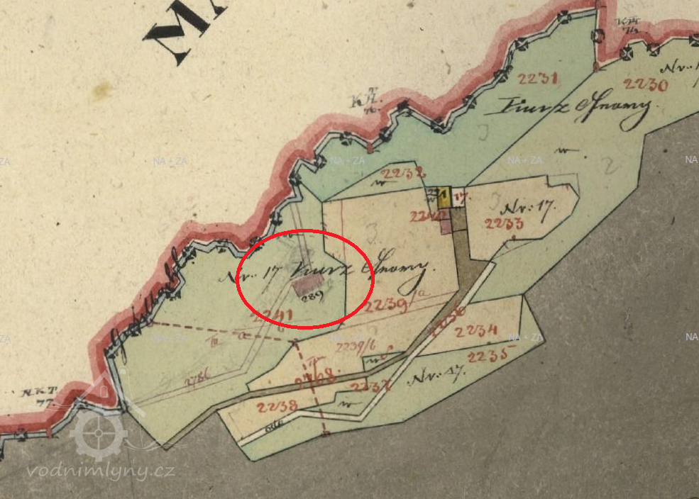 1838 - Georg Kurz. Mlýn byl vystavěn po roce 1838, do indikační skici je dokreslen dodatěčně. Obytná budova vznikla před rokem 1838.