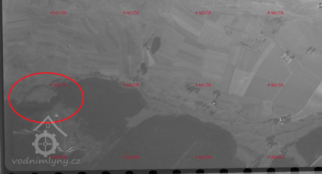 Na leteckém měřičském snímku z roku 1947 už není mlýn ani obytný dům vidět.