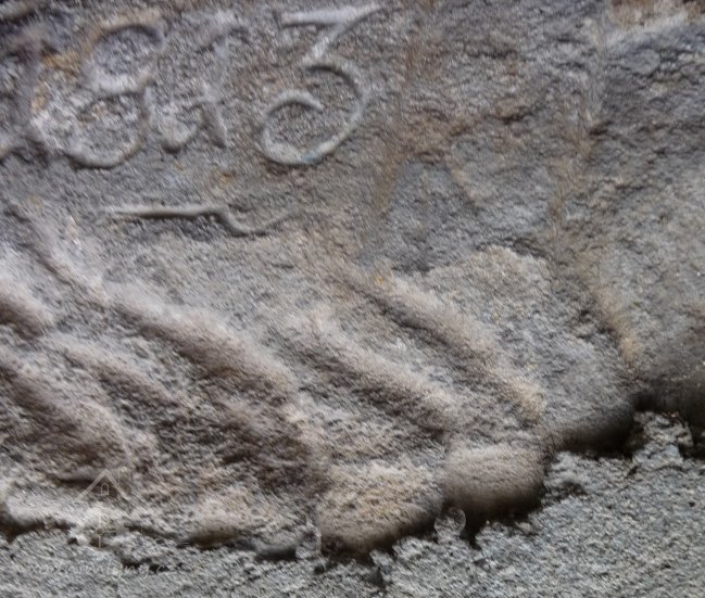 Ve sklepení vytesán letopočet 1856, na dveřích do sklepení 1813, na jejich ostění (zazděném vzhůru nohama) 1855.