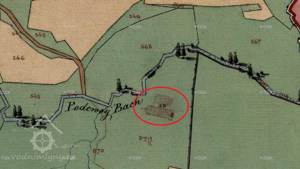 Mlýn byl založen někdy po roce 1837, na císařském povinném otisku ještě chybí, na indikační skice a originální mapě stabilního katastru je dokreslen dodatečně.