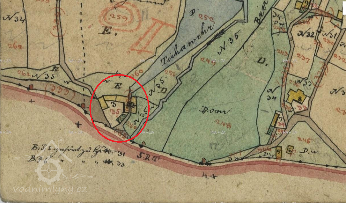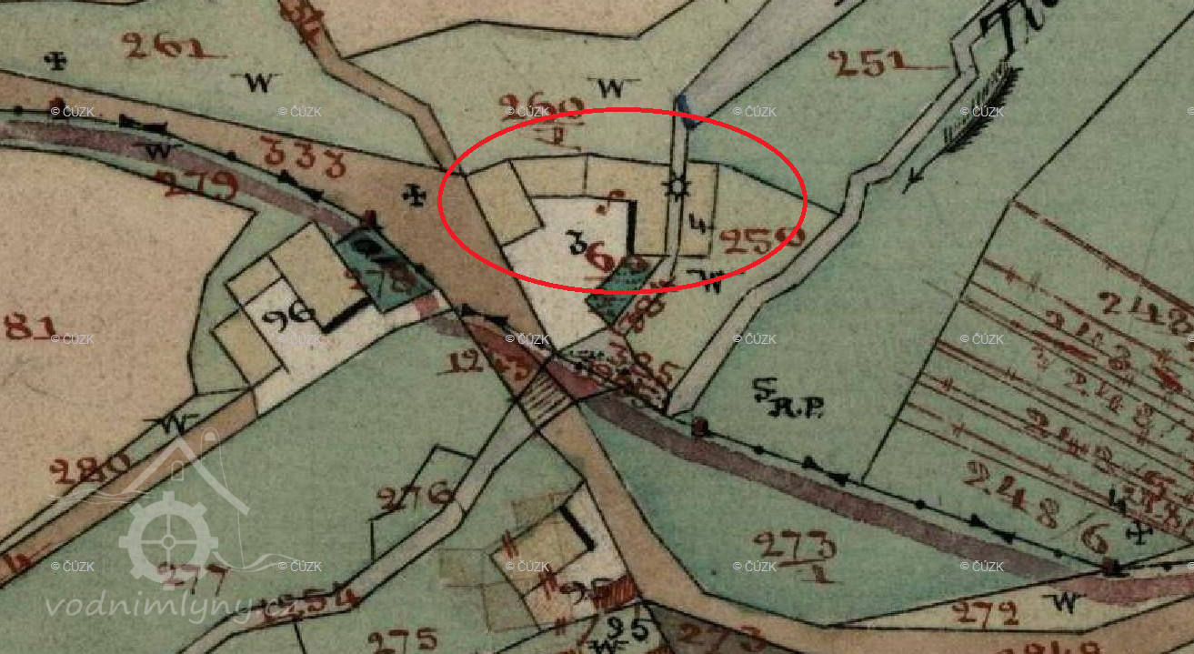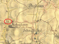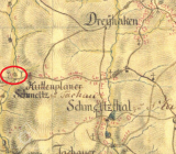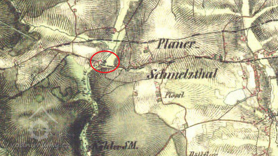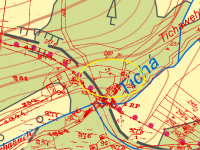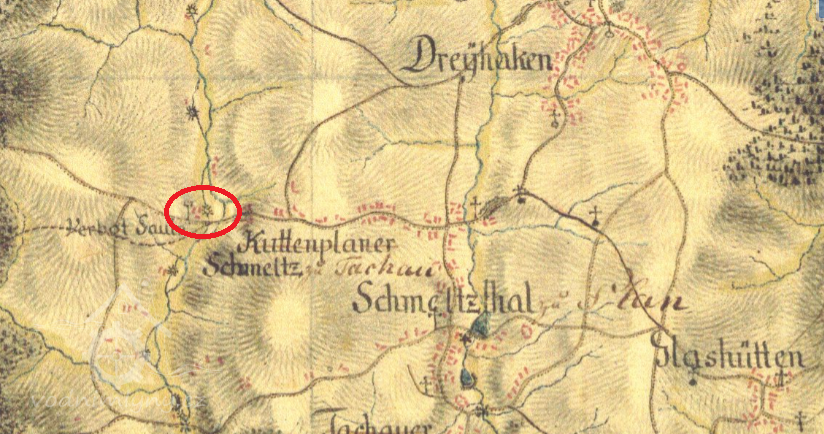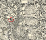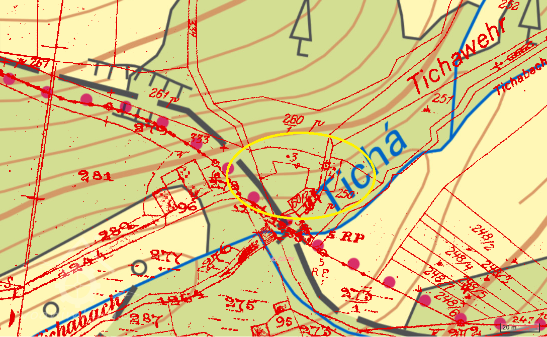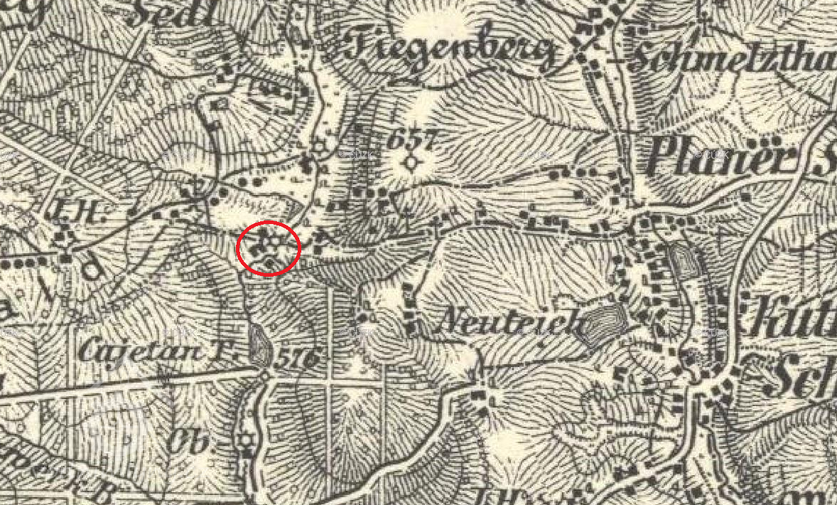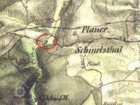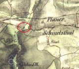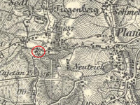 Zakreslen v mapě I. vojenského mapování