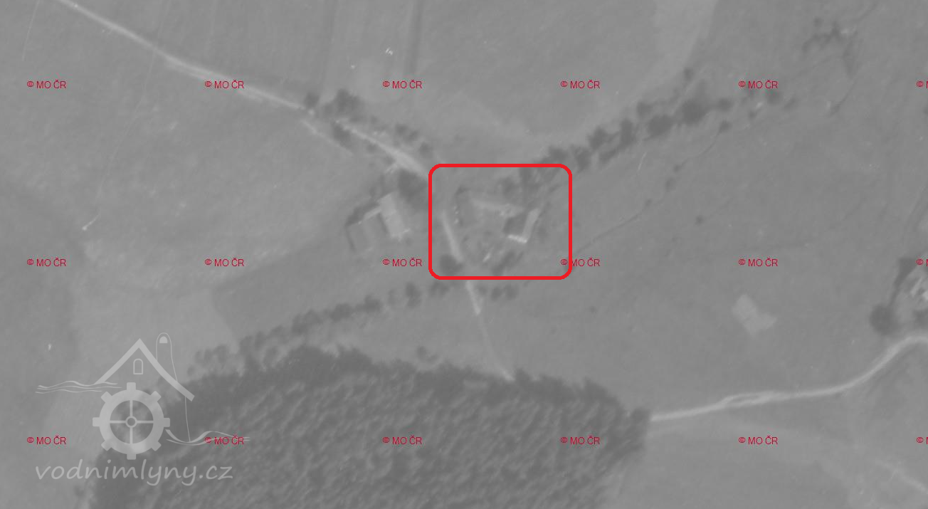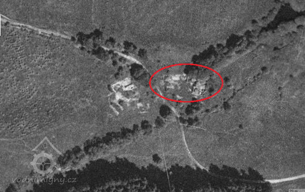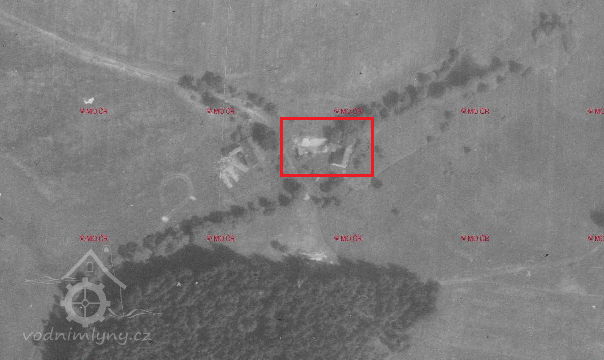 1945 - vysídlení německého obyvatelstva. Na leteckém snímku z roku 1948 je mlýn ještě v pořádku.