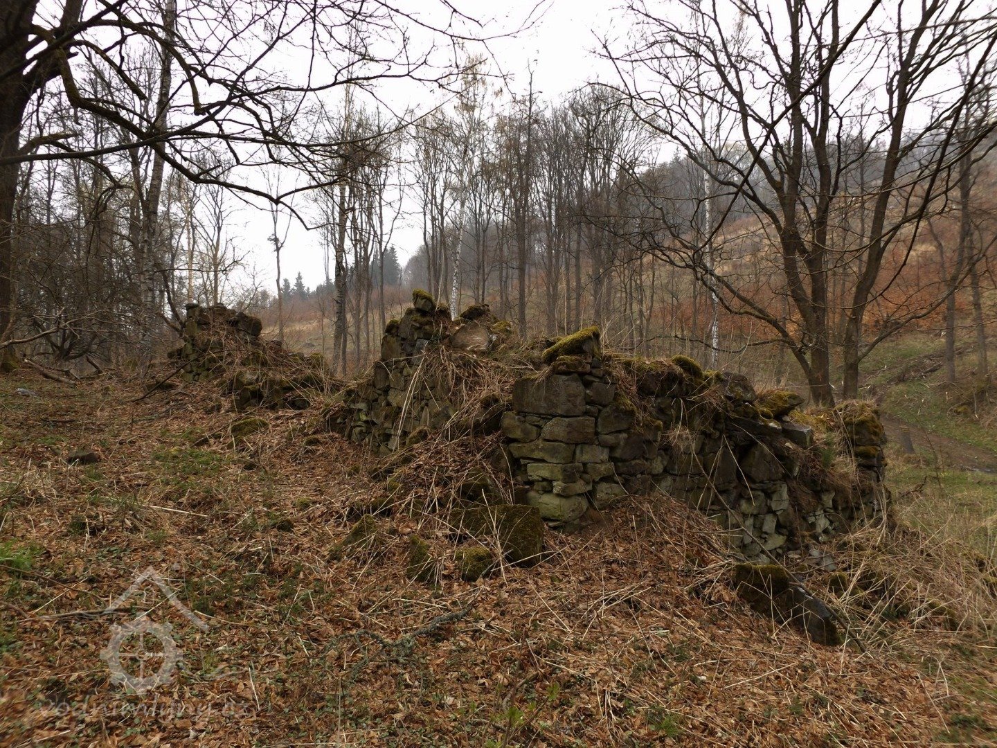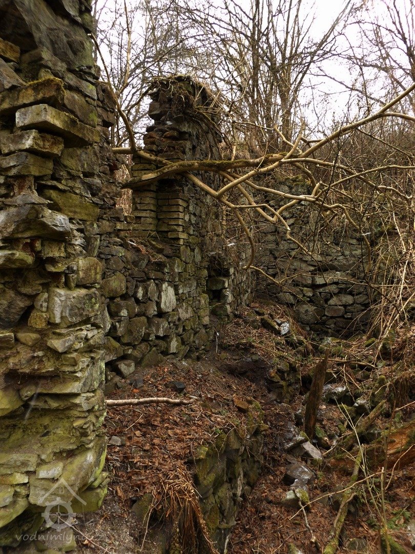 Zaniklý novější mlýn ve vojenském prostoru Doupov.