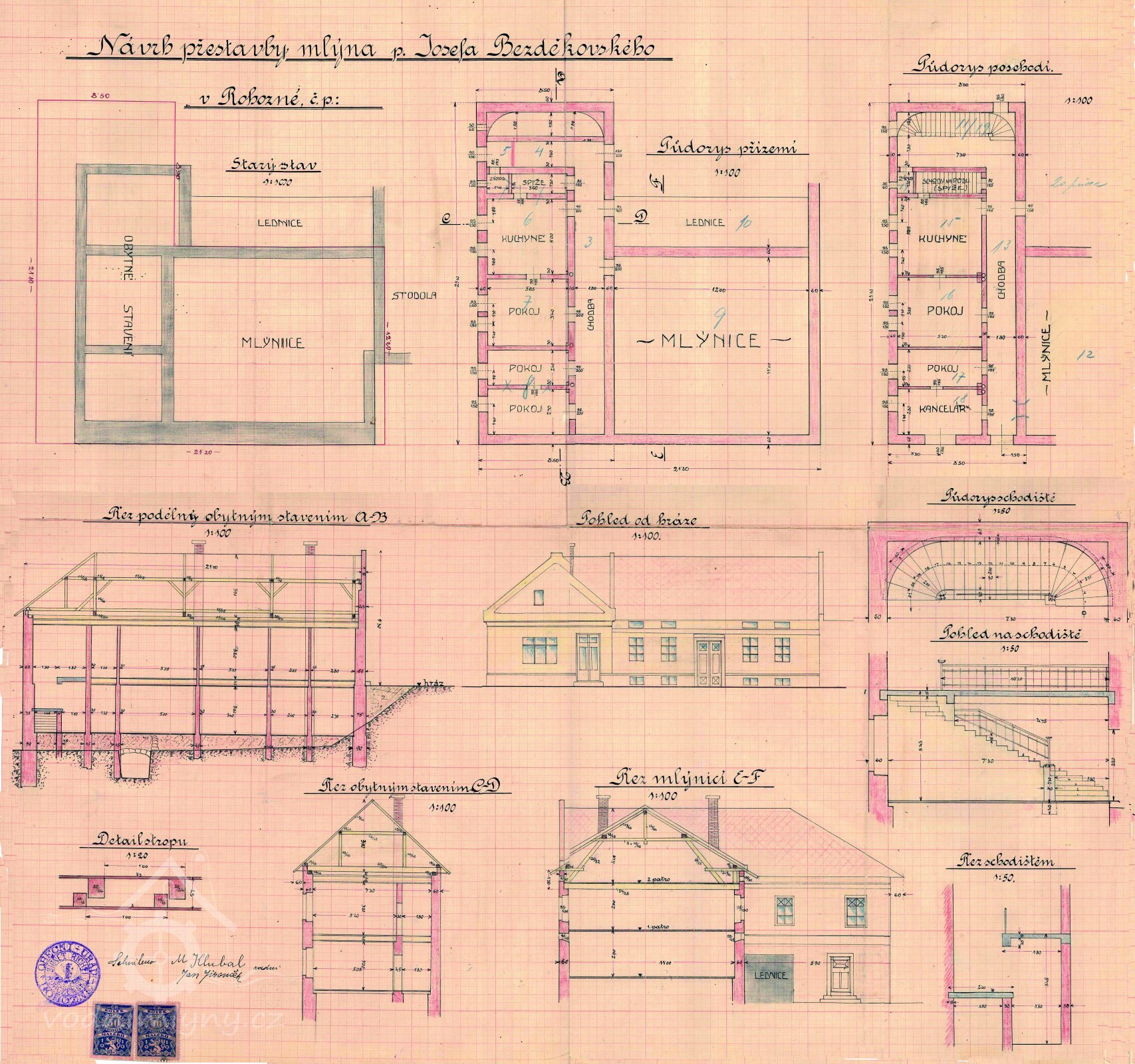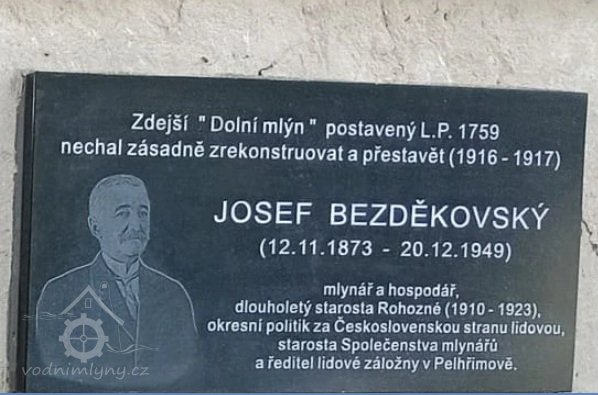 1916-17 - Josef Bezděkovský (II) realizuje zásadní modernizaci mlýna a celkovou přestavbu mlýnského stavení (do její současné podoby) - dvě Francisovi turbíny (o spotřebě 316 l/s resp. 156 l/s).