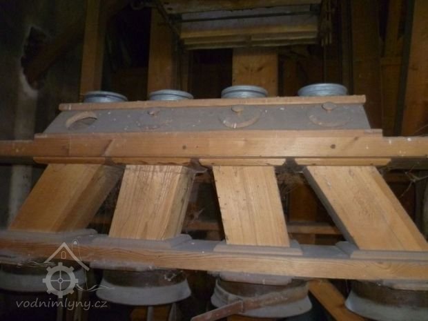 Horní vodní kolo má průměr 4 m a šířku 0,6 m a žene střídavě jedno české mlýnské složení užívané co špičák a hospodářskou mlátičku a řezačku. Dolní vodní kolo o průměru 4,25 m a šířce 0,9 m žene střídavě dvě válcové stolice nebo dvě jednoduché stoupy. Český mlýnský kámen má průměr 0,8 m. Obě vodní kola jsou dřevěná, dvouvěncová na horní vodu.