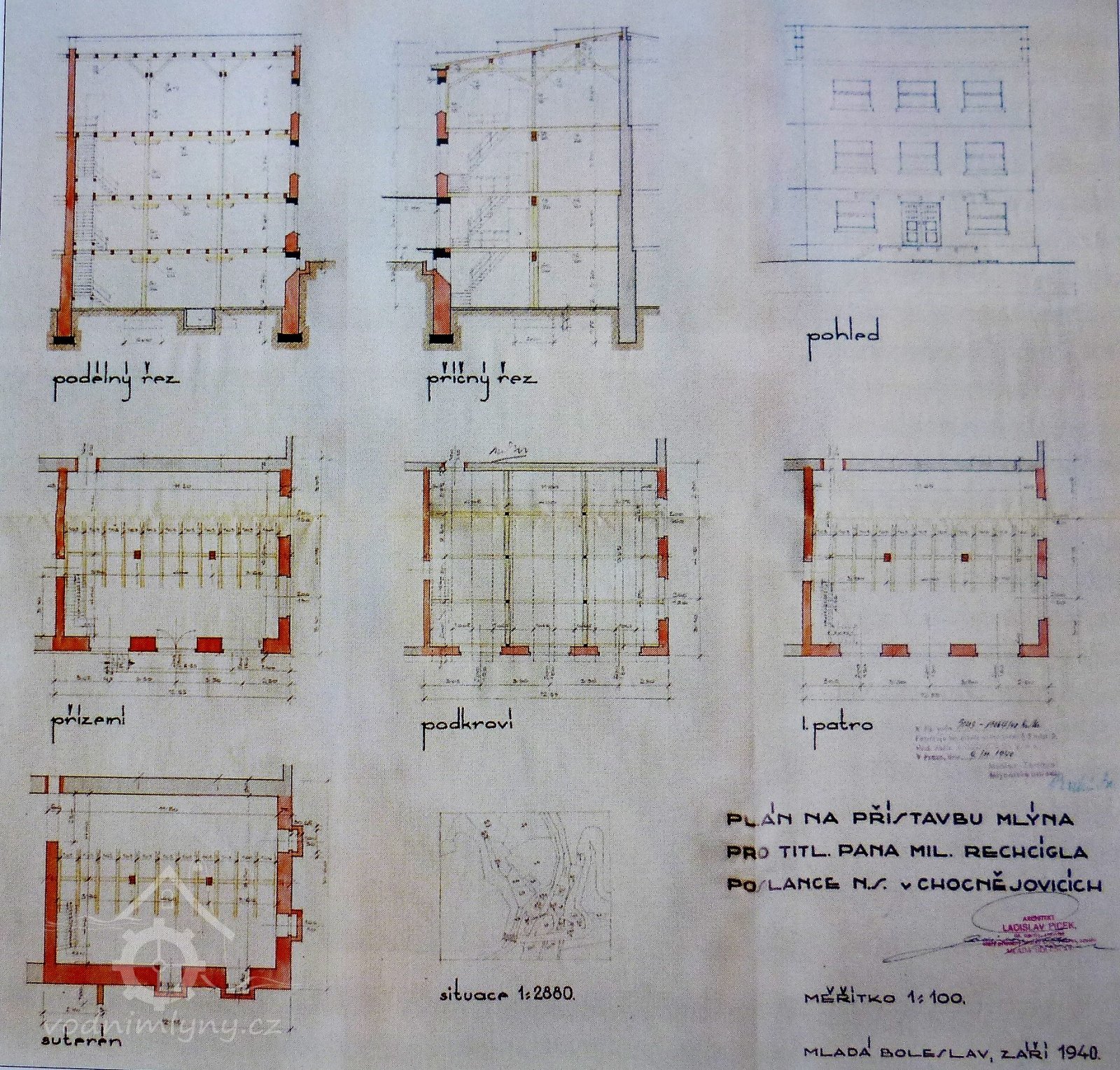 Počátkem 40. let vznikl projekt na stavbu moderní mlýnské budovy. Nový zděný objekt měl půdorysné rozměry 12.2 x 10,6 m se čtyřmi podlahami a těsně sousedil s budovou čistírny a sila. Stavební plán vypracoval boleslavský architekt Ladislav Picek v roce 1940, plán zařízení mlýna v témže roce firma Akciové železárny v Komárově.