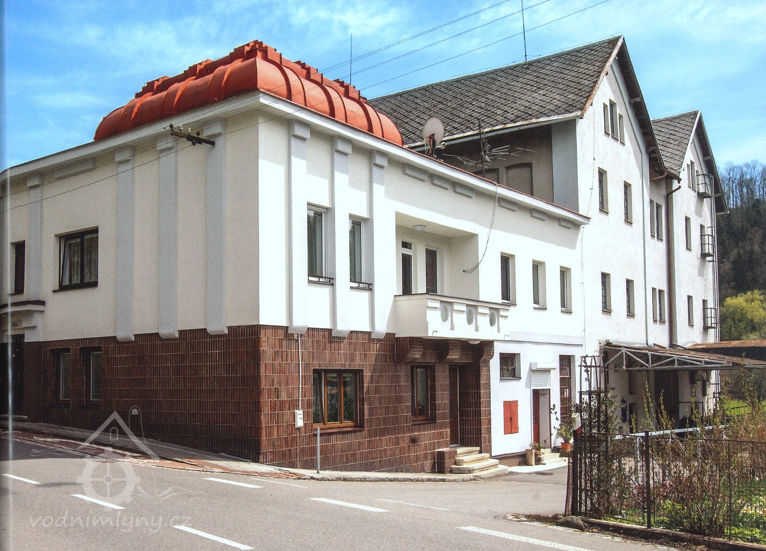 Moderní obytná budova majitele mlýna z r. 1927 podle plánů místního stavitele Jiřičky, postavená na místě zbořeného barokního mlýna.