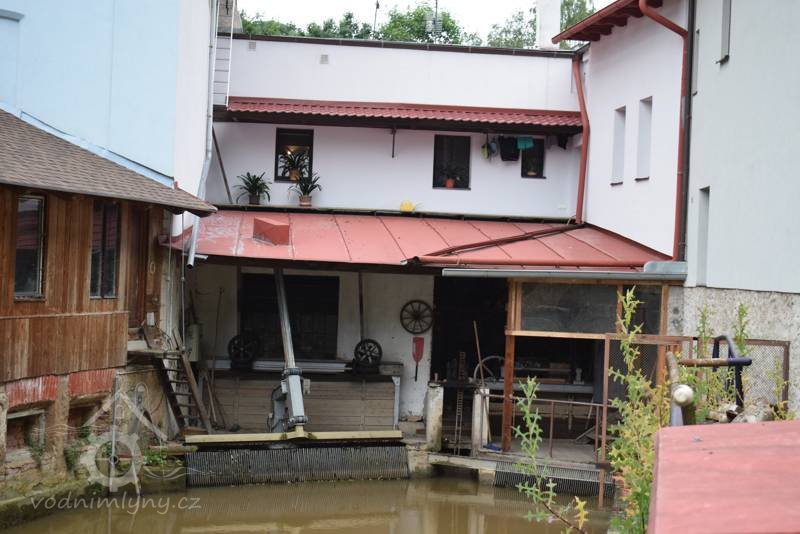 Stavební trakt překračující náhon, průčelím architektonicky sjednocený s obytnou budovou.