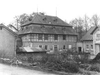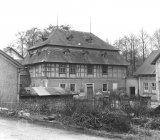Památkově chráněný hrázděný mlýn, stržený v roce 1987.