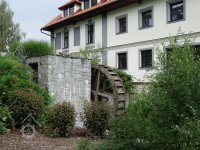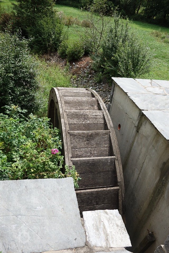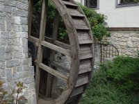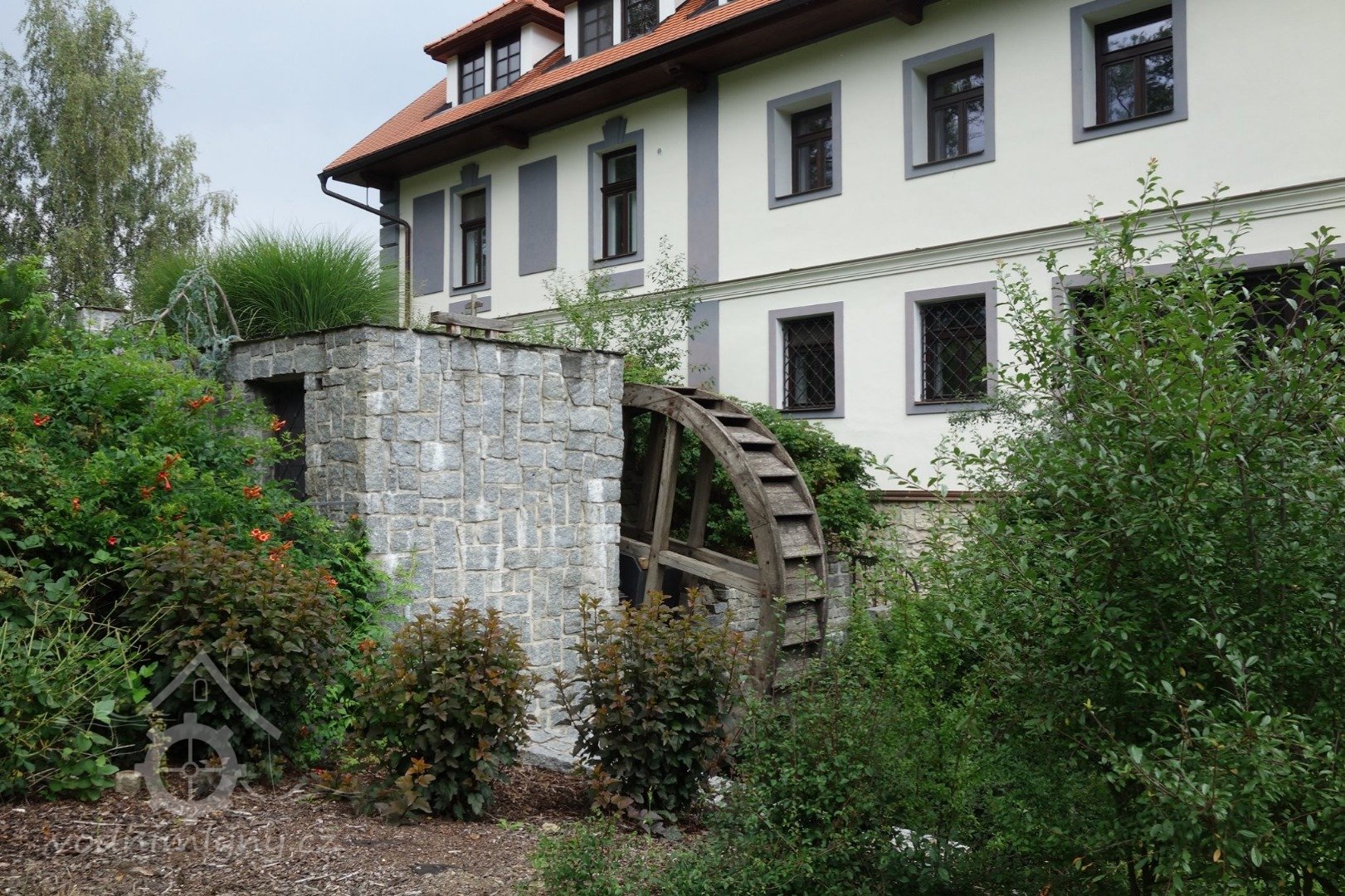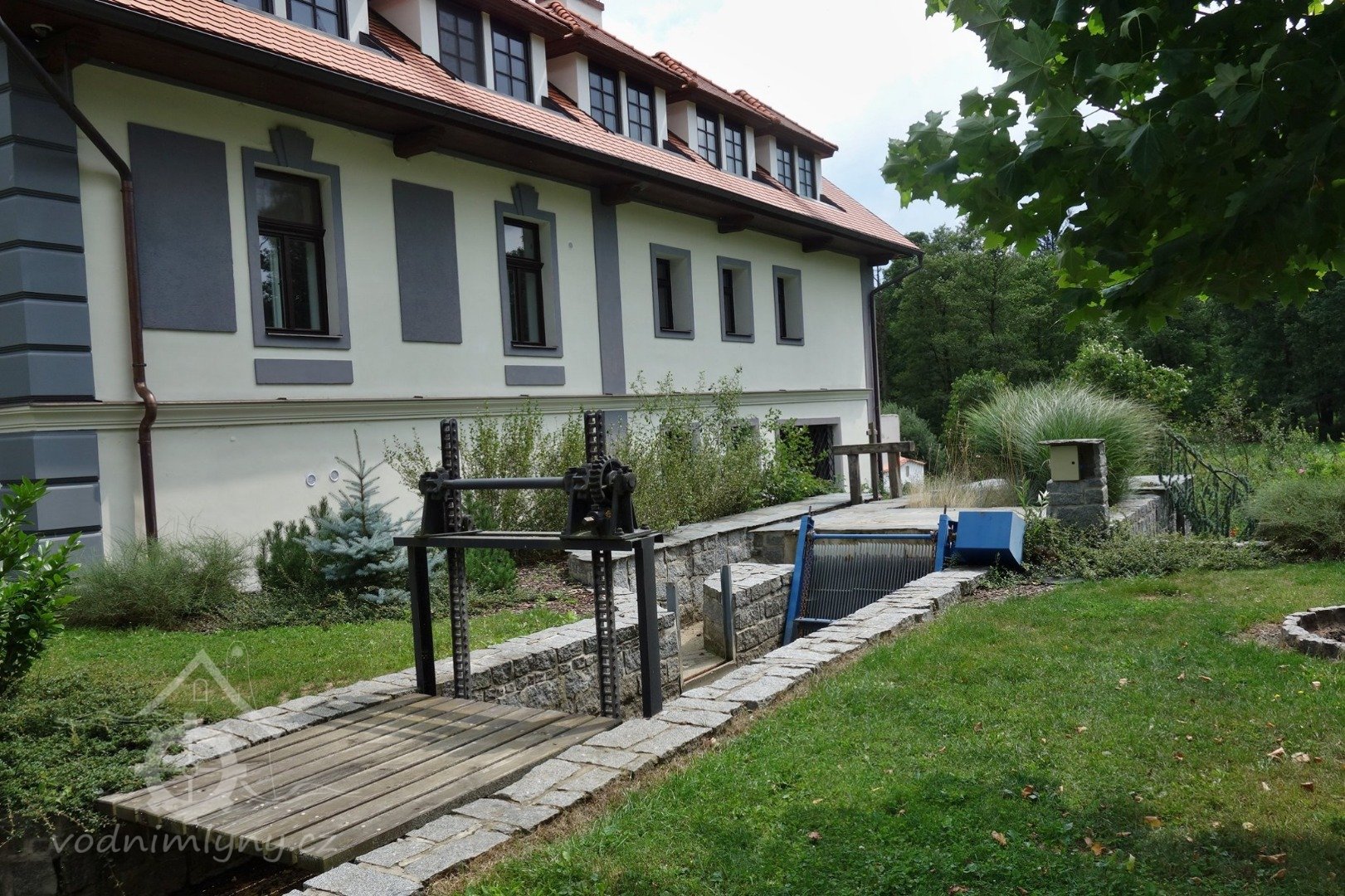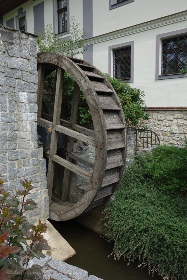 Mlýn s vodním kolem, který vyrábí elektřinu