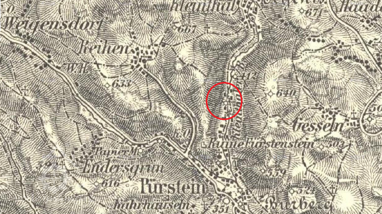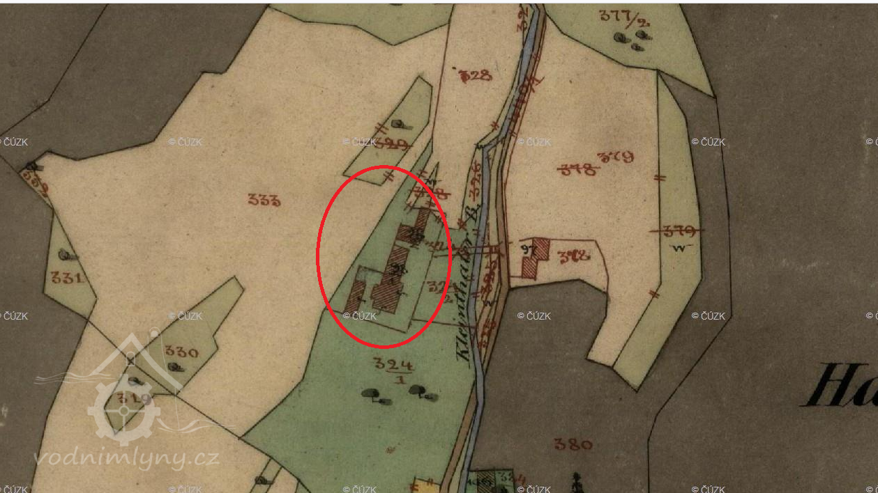 Postaven po roce 1842, vyznačen na Originální mapě stabilního katastru.
