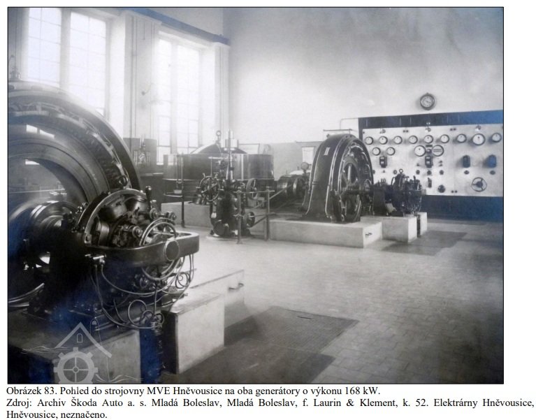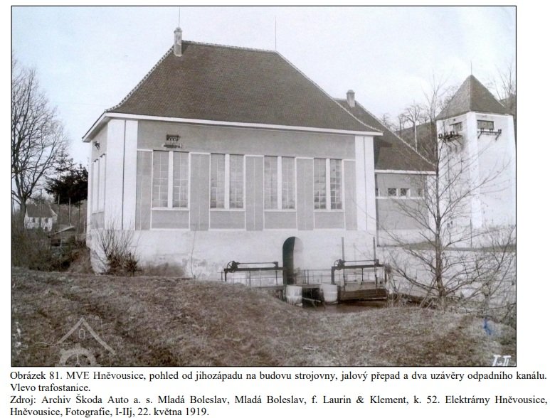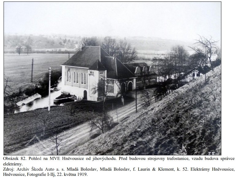 Firma L&K, a. s., továrna na automobily v Mladé Boleslavi se stala majitelem MVE Hněvousice od 1. prosince 1918, dřívějším majitelem byl Adolf Waldstein z Doks. Elektrárna byla postavena a uvedena do chodu v roce 1912.
