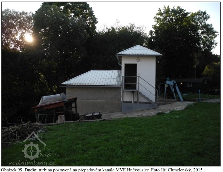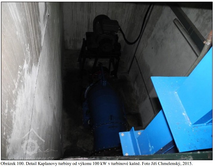 Popisv 80. letech 20. stol. v samostatném objektu instalována Semi-Kaplanova turbína s horizontálním hřídelem o výkonu 75 kW, po rekonstrukci 2018 110 kW.