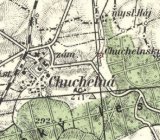 1 km východně od kostela Povýšení sv. Kříže v Chuchelné