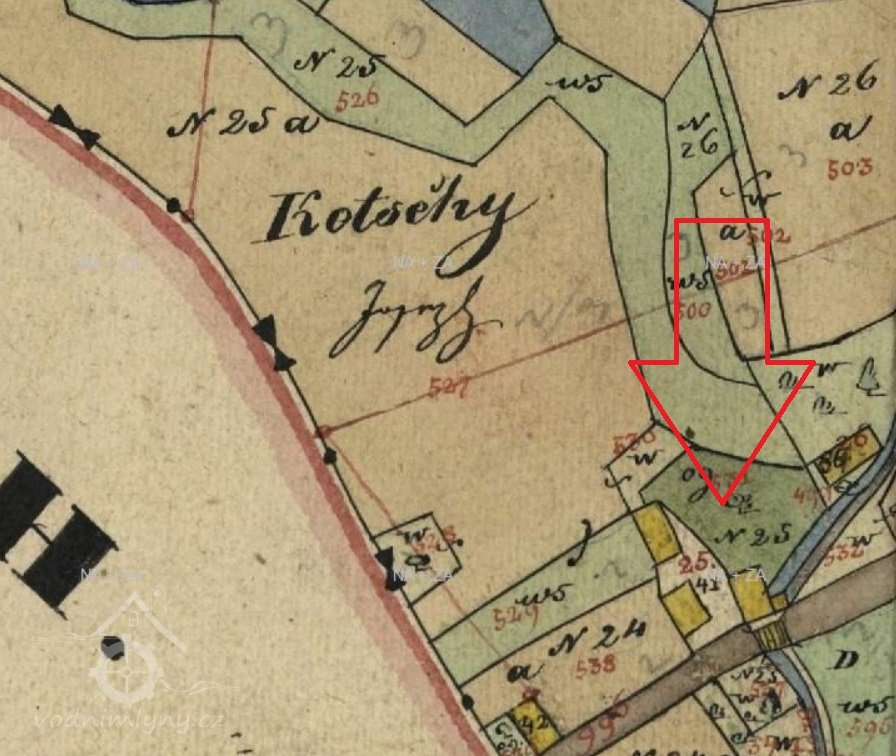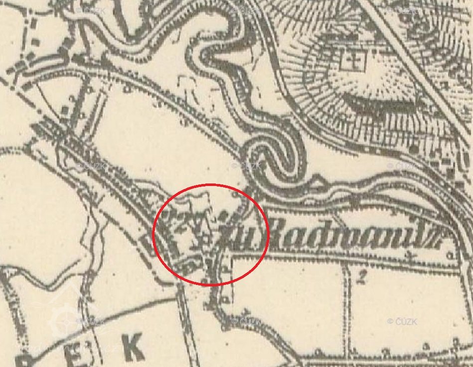 Mlýn zmiňován v 18. stol., v Seznamu z r. 1930 uveden není, budova zanikla po roce 1969, kdy bylo též přeloženo koryto řeky.