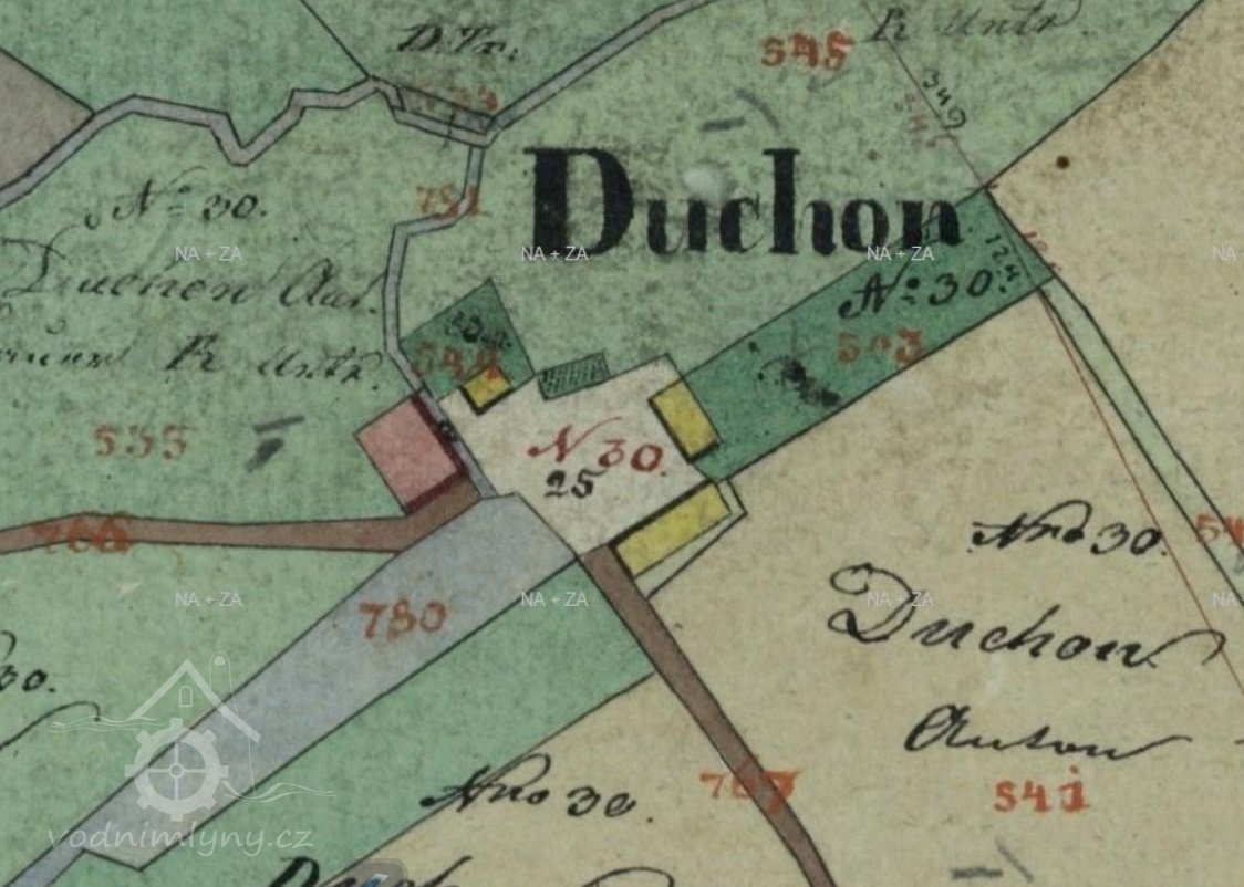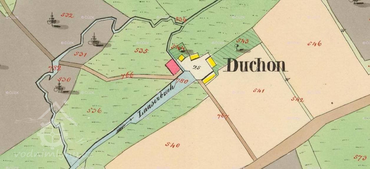 Duchoňův, hořejší Achačův, Podhrádecký mlýn,